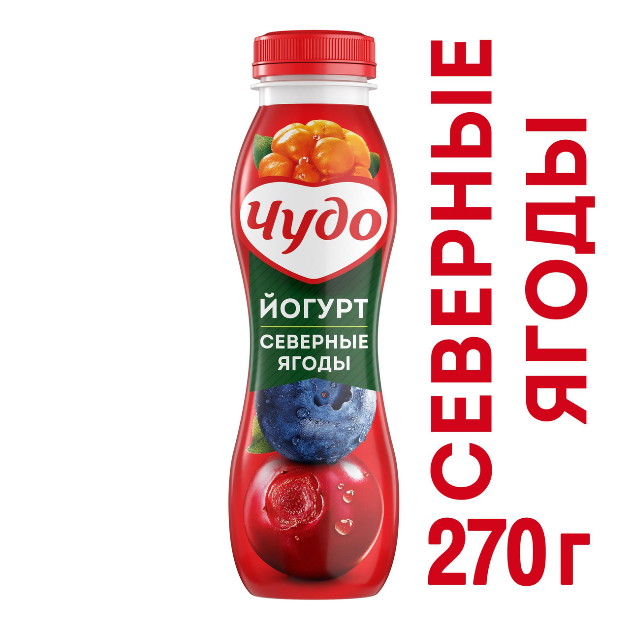 Питьевой йогурт со вкусом и ароматом северных ягод - брусники, голубики и морошки! Оцените мягкую кислинку, свойственную этим ягодам, в сочетании со сливочным вкусом нежного йогурта. Под маркой "Чудо" вот уже 20 лет производят самые разные молочные угощения: йогурты, творожки, пудинги и многое другое. В основе продуктов - натуральное молоко, ягоды и фрукты.