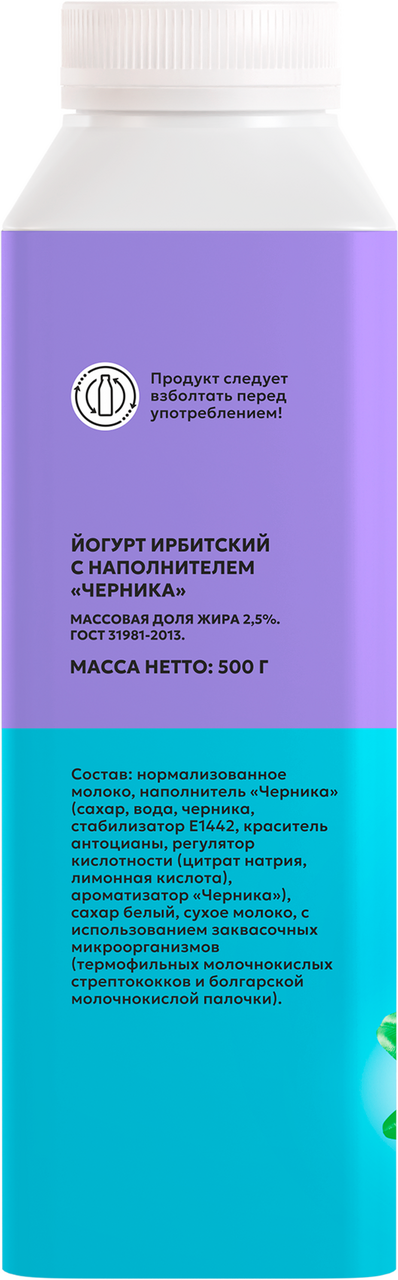 Йогурт питьевой Ирбитский молочный завод Ирбитский черника 2.5%, 500г