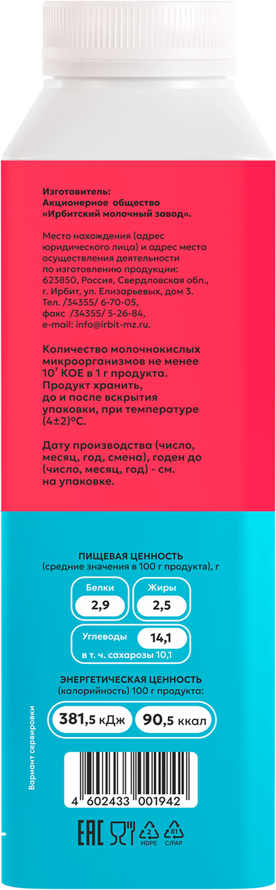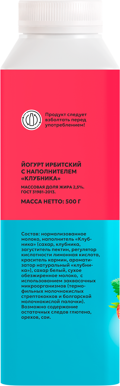 Йогурт питьевой Ирбитский молочный завод Ирбитский клубника 2.5%, 500г