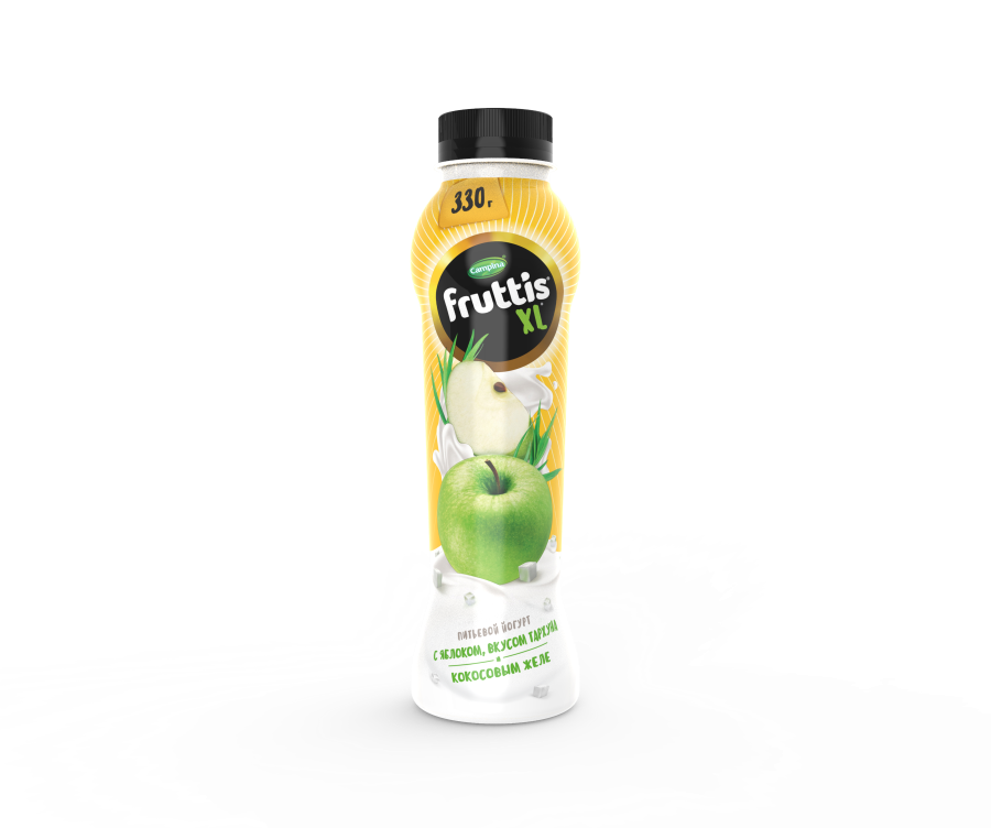 "Йогурт Fruttis XL - XL во всем! XL - порция, XL - вкус, XL - веселье. - Большая порция 330г- Потрясающие нескучные вкусы - Отборное молоко- Восхитительная текстура- Настоящие фрукты- Кусочки кокосовго желе в каждой бутылке- Без консервантов- Без искусственных красителейТолько попробовав, вы поймете, что такое Fruttis XL! Попробуй все вкусы питьевого Fruttis XL: с клубникой и мятой, с яблоком и вкусом тархуна, с анансом и куркумой и с кокосом и манго!В ассортименте продуктов под брендом Fruttis всегда можно найти что-то для себя: йогурты в стаканчиках для всей семьи, питьевые йогурты, а также йогуртные коктейли! Только из отборного молока и с настоящими фруктами! Компания FrieslandCampina - голландская компания, у истоков которой стоит фермерский кооператив, образованный в 1871 году. FrieslandCampina сохраняет и приумножает ценные свойства молока, чтобы сделать их естественным источником энергии каждого человекаЭта миссия компании лежит в основе всех стратегических приоритетов компании. С 1992 года компания активно развивается в России с помощью таких торговых марок, как Fruttis, Campina Нежный, Landliebe, Campina и Friso. "
