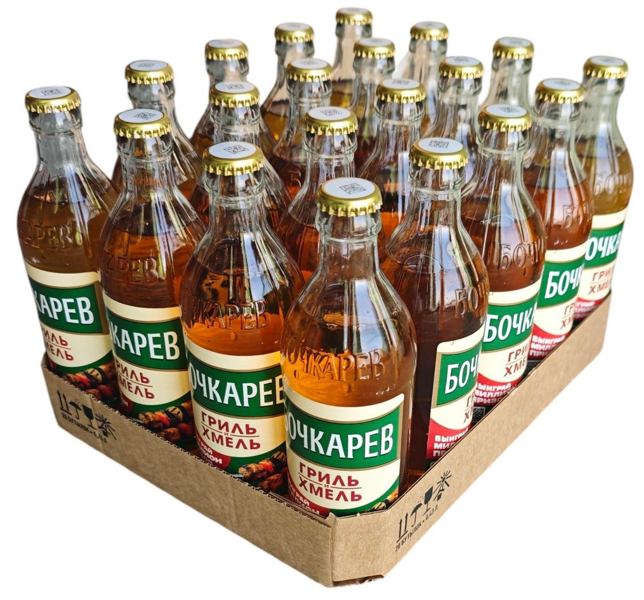 Пиво светлое пастеризованное Бочкарев Гриль и Хмель. Благодаря купажу светлого и карамельного солода пиво обладает насыщенным цветом. Обладает экстра мягким вкусом за счет метода холодной фильтрации. Сбалансированный, освежающий лагер, его насыщенный солодовой характер и хмелевая горчинка идеально дополняют пряные, мясные блюда на гриле. Рекомендуется к употреблению в охлажденном виде.