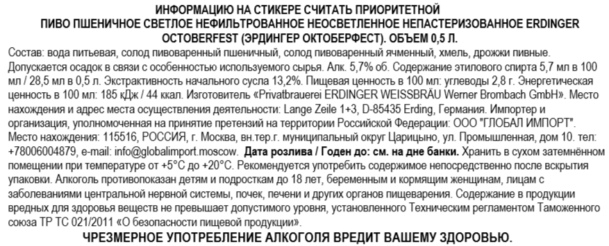 Вода питьевая, солод пивоваренный пшеничный, солод пивоваренный ячменный, хмель, дрожжи пивные.