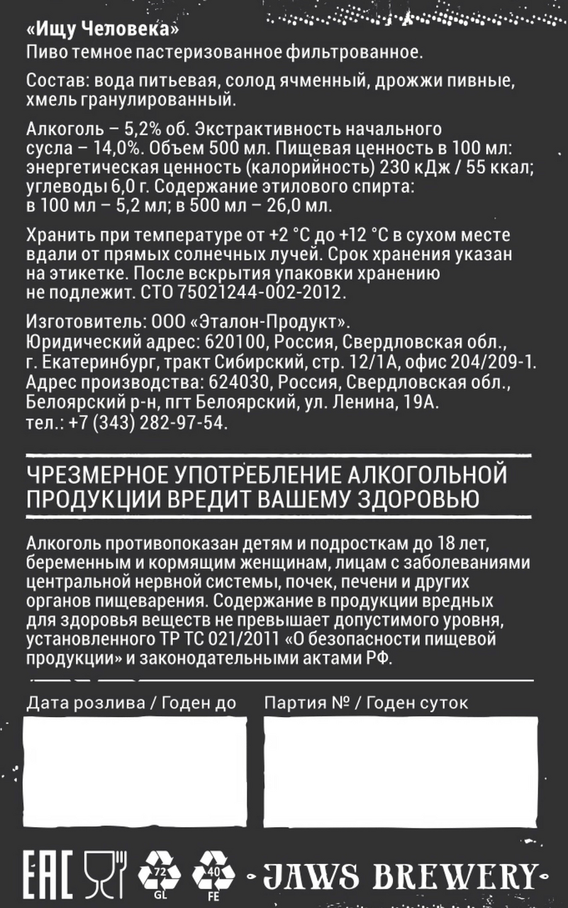 Пиво Jaws Ищу человека темное, 0.5л