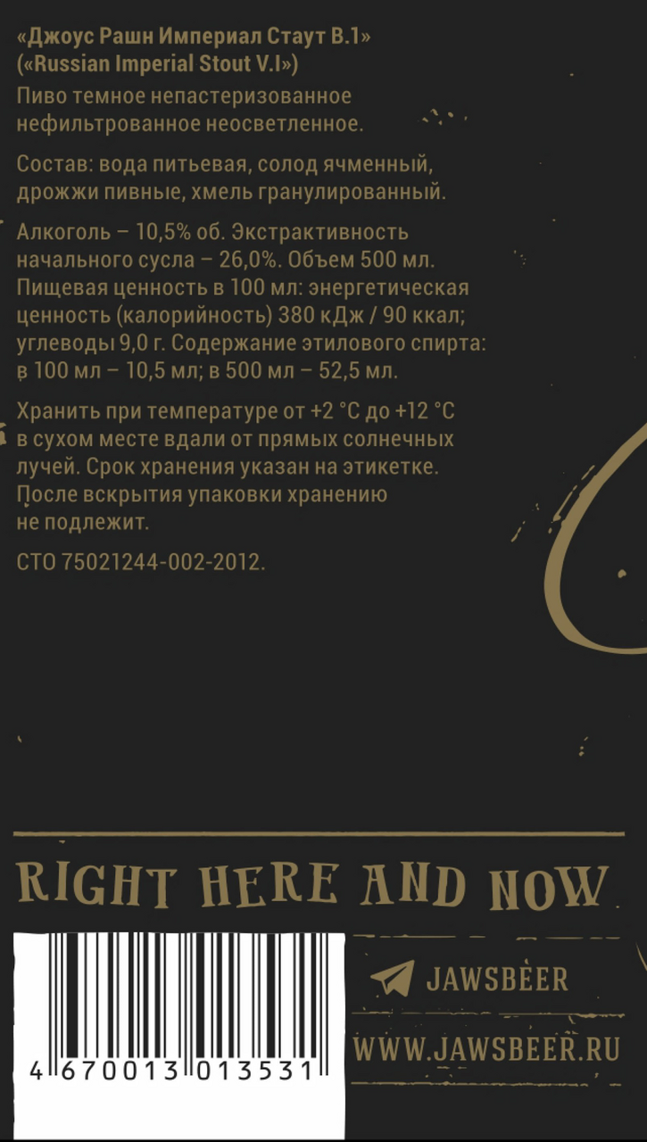 Пиво Jaws Russian Imperial Stout темное, 0.5л