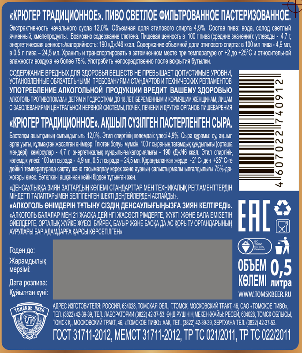 Пиво Kruger традиционное, 0.5л