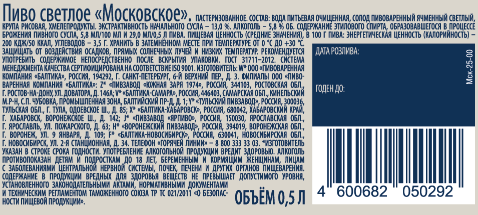 Вода питьевая очищенная, солод пивоваренный ячменный светлый, крупа рисовая, хмелепродукты.