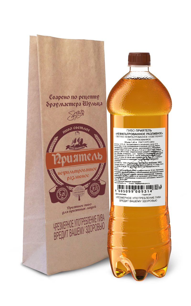 Пиво Приятель нефильтрованное разливное, 1.42л