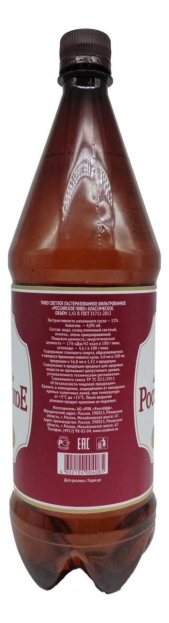 Пиво Российское Классическое пастеризованное, 1.42л