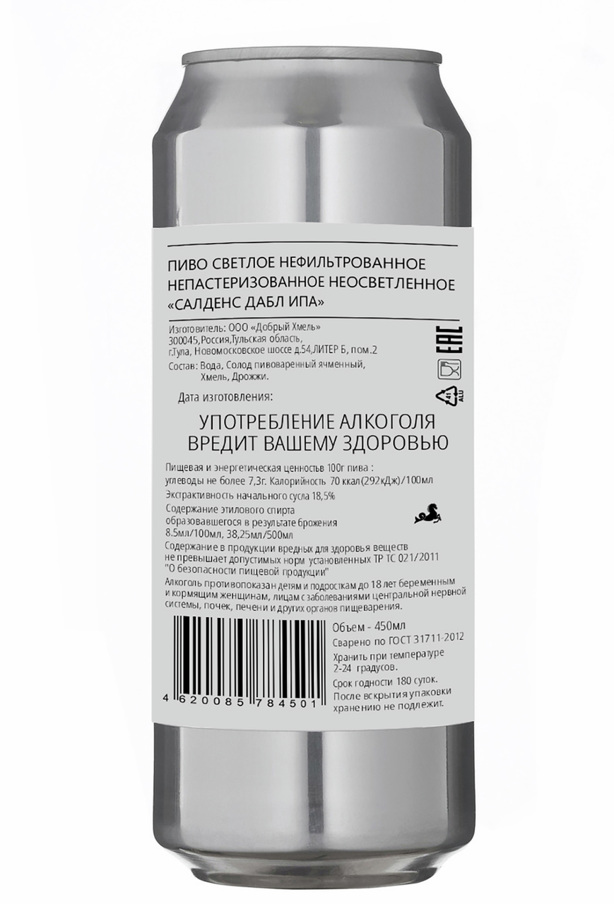 Двойной IPA в стиле западного побережья США на охмелении которого использовались по-настоящему олдскульные хмели Goldings, Cascade, Columbus и Chinook, радующие всех любителей охмелённого пива уже не один десяток лет, что и отражено в названии сорта. Не смотря на свою крепость этот эль почти не обладает сладостью и благодаря выбору хмелей имеет насыщенную горечь с оттенками хвои, дерева, цитрусовых и травы, а так же продолжительную накопительную сухость на финише и послевкусии. Светлое нефильтрованное и непастеризованное пиво в интересном, довольно редком, но набирающем популярность стиле Cold IPA, придуманном в штате Орегон. Идея была создать легкий, сухой и не слишком горький ИПА. Пивовар Кевин Дейви хотел создать такое пиво, которое сможет стать соперником NEIPA и будет изящнее и лучше, чем IPL или лагер с сухим охмелением. Двойной ИПА от Салден'с был сброжен до предельной сухости с лагерным штаммом дрожжей, но при элевых температурах. Такое сочетание в совокупности с базой из светлого солода, а также небольшим добавлением несоложёного сырья, позволило еще ярче раскрыть травянисто-хвойные оттенки классических хмелей сортов Цитра и Мозаик. Уверенная горечь в 100 IBU и цитрусовые тона на финише лишь еще больше подчеркивают профиль этого пива.