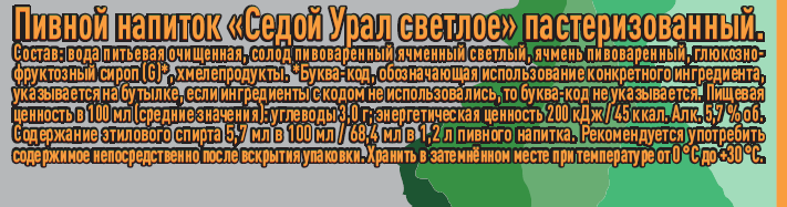 Вода питьевая очищенная, солод пивоваренный ячменный светлый, ячмень пивоваренный, глюкозно-фруктозный сироп (G), хмелепродукты.