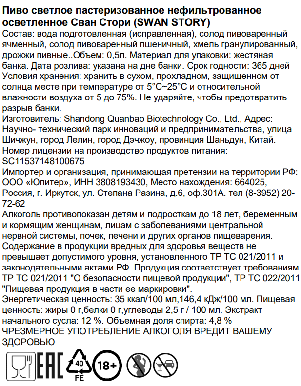 Пиво светлое, пастеризованное, нефильтрованное Сван Стори с градусом 4,8% и объемом 0,5 литра - отличное сочетание легкости и насыщенного вкуса. Оно поражает своей свежестью и сбалансированным вкусом, что делает его идеальным выбором для приятного времяпрепровождения. Пиво обладает светлым золотистым цветом и легкой пеной, которая радует глаз. Аромат насыщен цветочными и хмелевыми нотами, а вкус раскрывается мягкими фруктовыми оттенками. Низкая горечь и освежающая структура делают его особенно приятным.