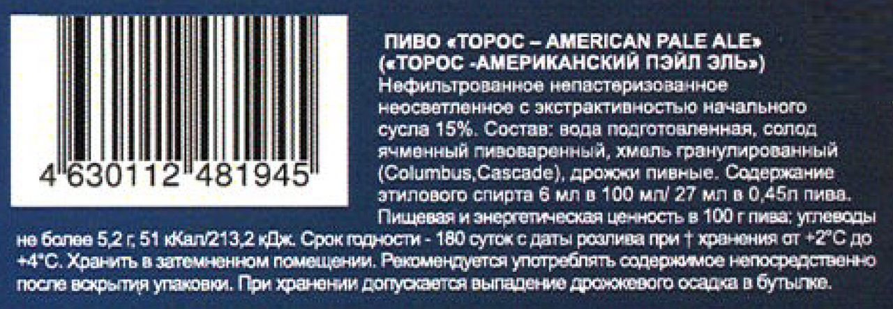 Пиво Торос APA, 0.45л