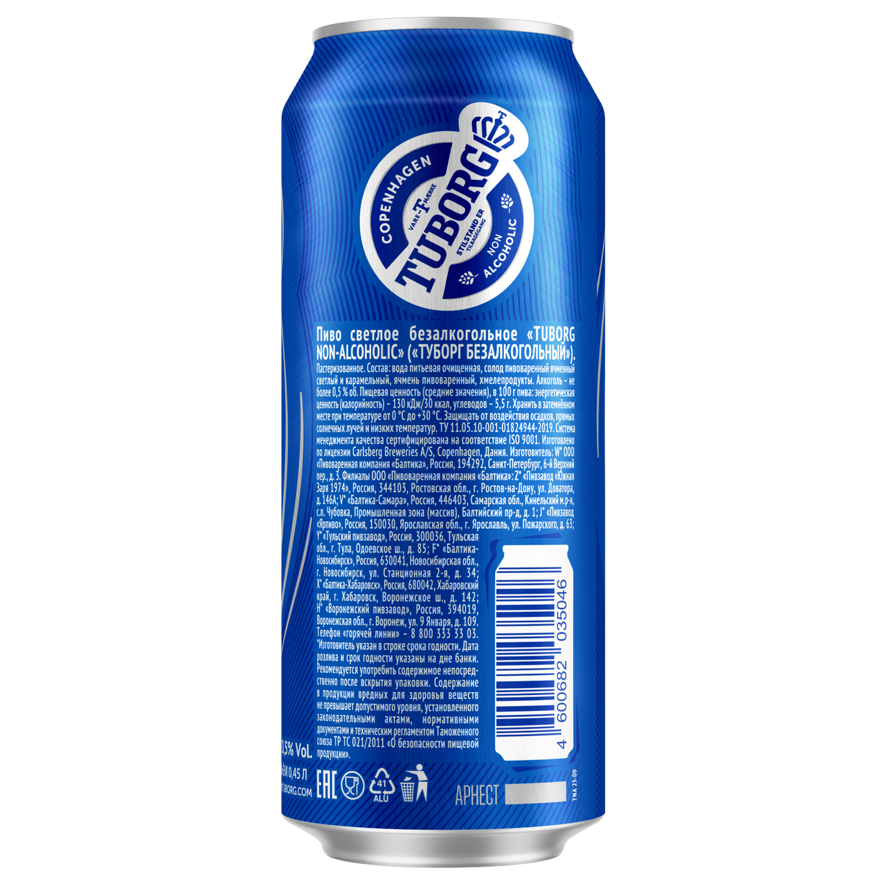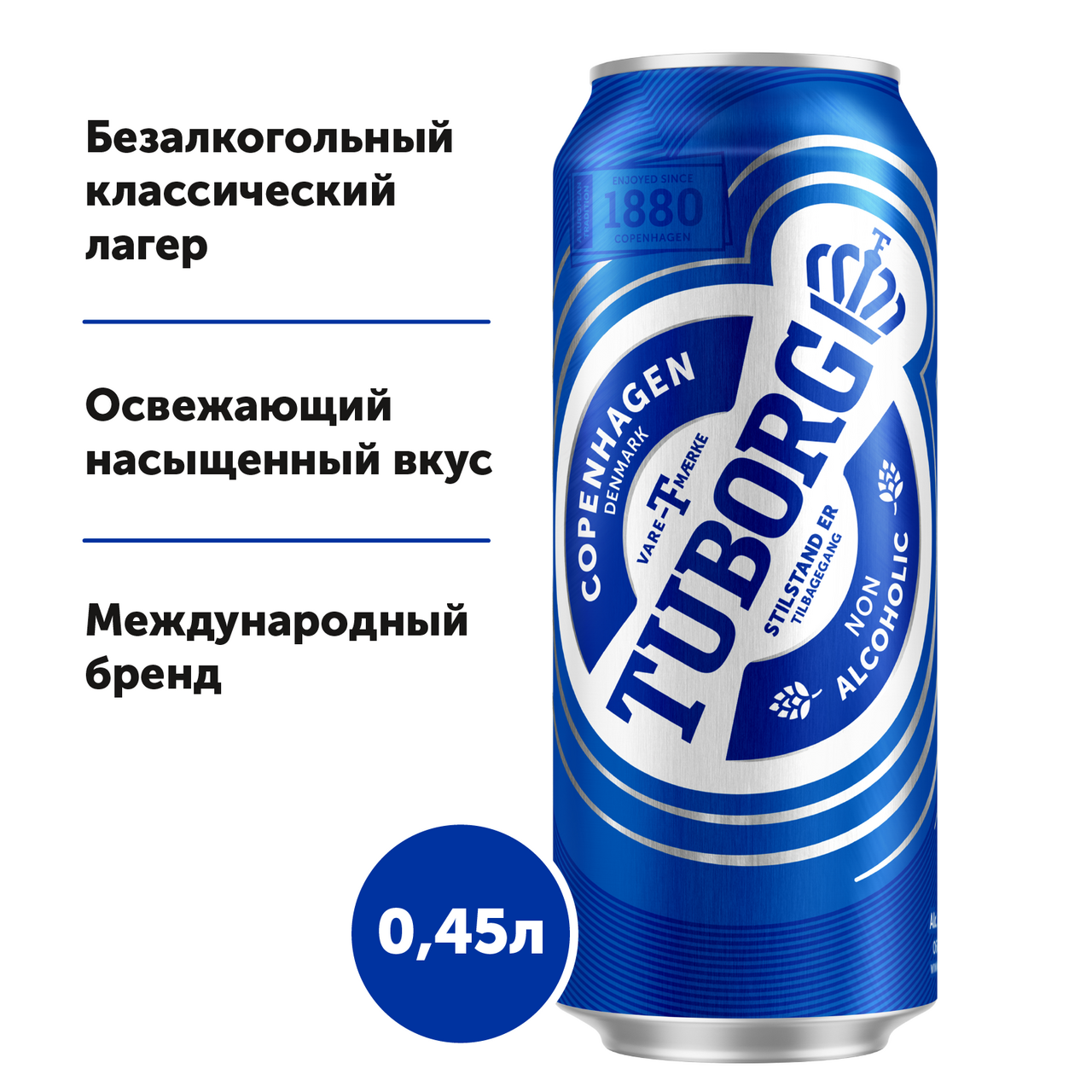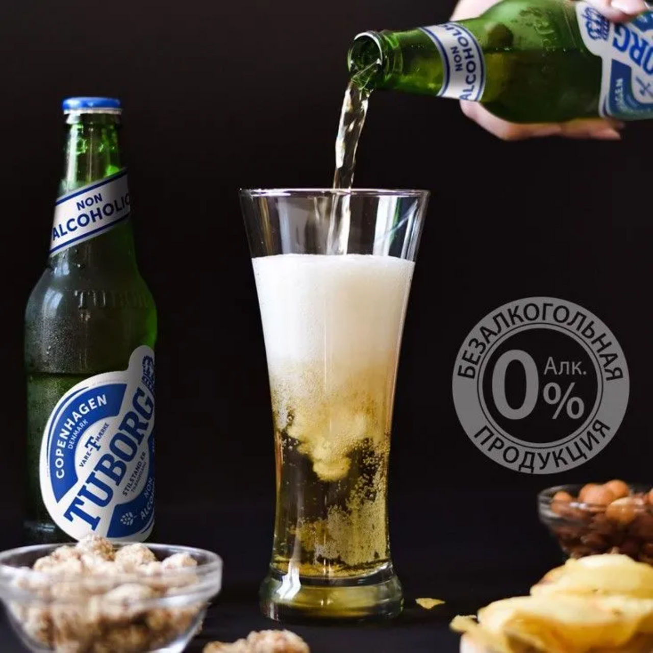 Tuborg Non-Alcoholic — освежающий светлый безалкогольный фильтрованный классический лагер со сбалансированным вкусом и легкими нотами фруктов в аромате. Солодовый напиток с хлебным оттенком, приятной сладостью и заметной хмелевой горечью. Туборг Безалкогольное прекрасно сочетается с мясом на гриле, а также является отличным дополнением к мясным закускам. Идеальная температура подачи: от +5 С до +8 С.