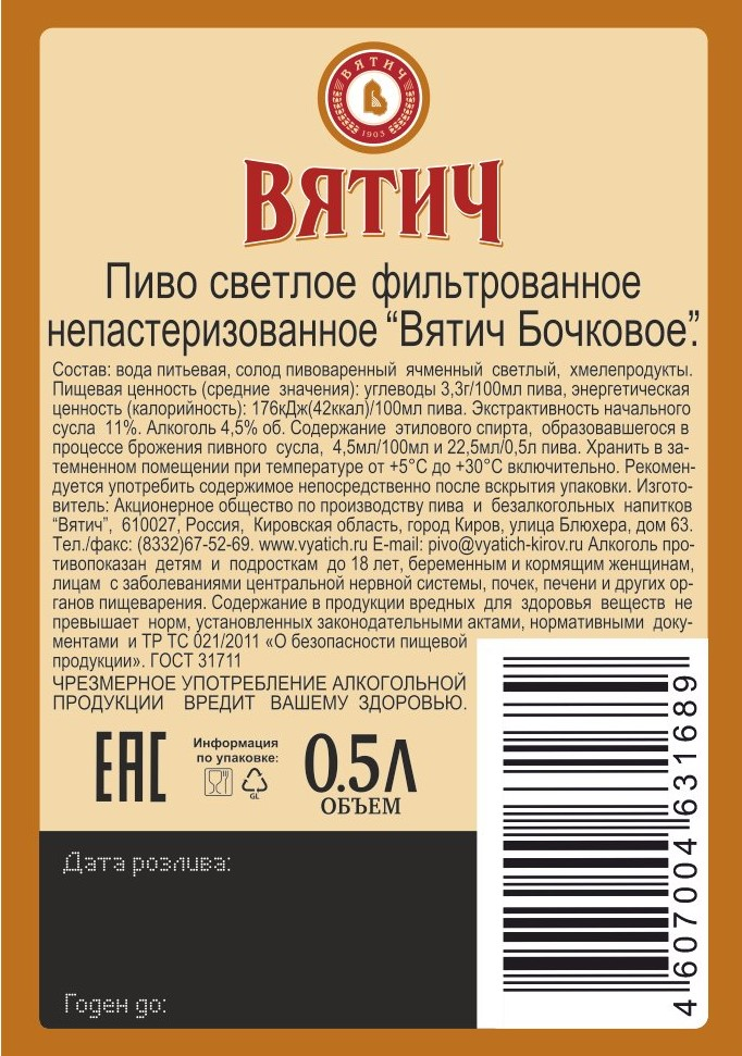 Светлый непастеризованный лагер с освежающим вкусом и тонким цветочным ароматом. Его секрет кроется в использовании особенного сорта немецкого хмеля из Халлертау — Tettnanger, именуемого зеленым золотом Германии. По традиции, хмель при варке пива закладывается вручную главным пивоваром. Кроме хмеля используется чистая вода из источника Живой дар и светлый ячменный солод сорта Pilsener.