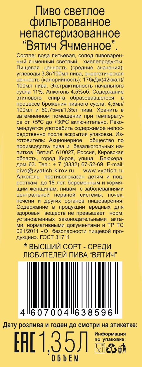 Вода питьевая, солод ячменный светлый пивоваренный, хмелепродукты.