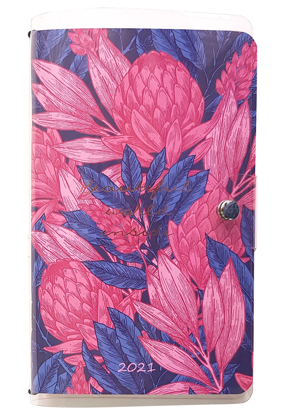 Планер датированный. Основная съемная обложка из прозрачного пластика с клапаном на кнопке имеет внутри удобные резинки для крепления тетрадей. Обложка каждого изделия из мягкого картона с микротекстурированием, ламинацией и печатью принта с внутренней стороны имеет скругленные уголки. Размер: 108x175 мм. Количество листов: 32. Блок из высококачественной белой бумаги плотностью 65 г/м2, со скругленными уголками. Тип крепления: скрепка. В планере - каждая неделя на одной странице. За счет удобной разборной конструкции тетради можно с легкостью заменить на новые!