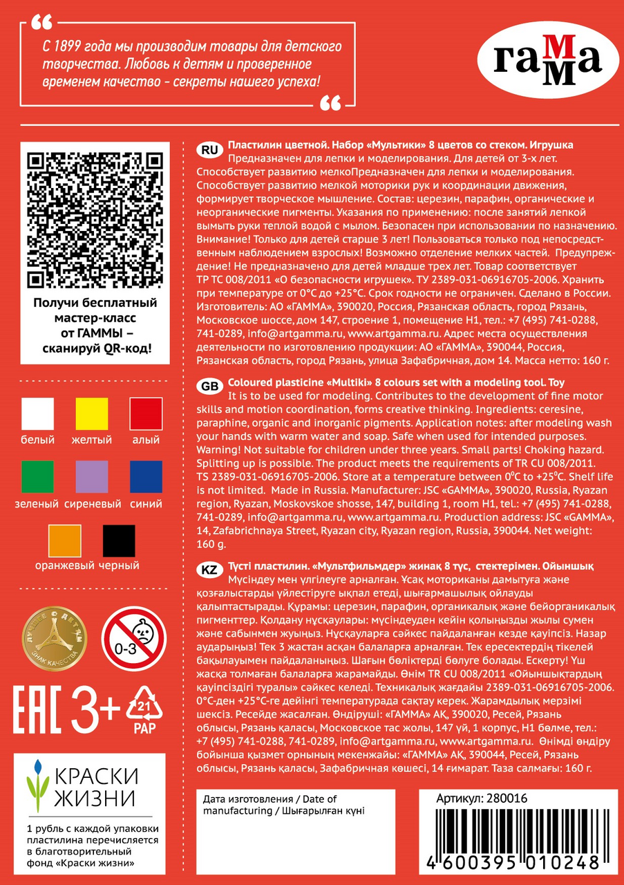Пластилин серии Мультики разработан специально для детей от 6 до 9 лет с учетом рекомендаций педагогов. Пластилин цветной со стеком для лепки и моделирования. Упаковка: картонная коробка.