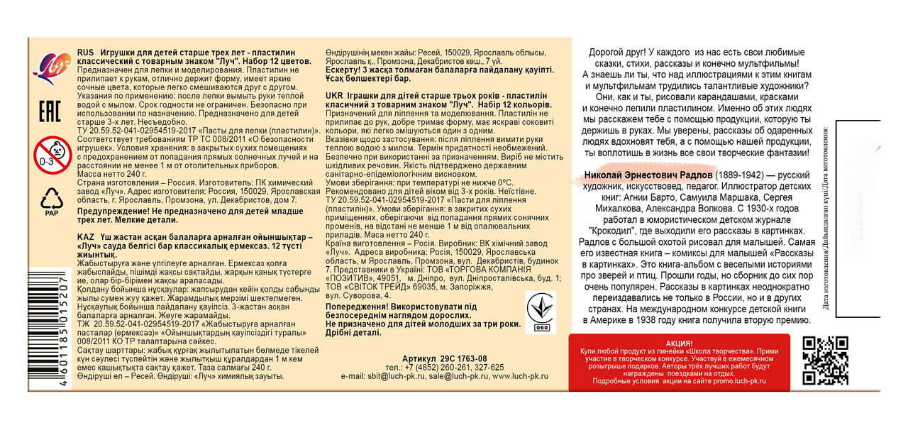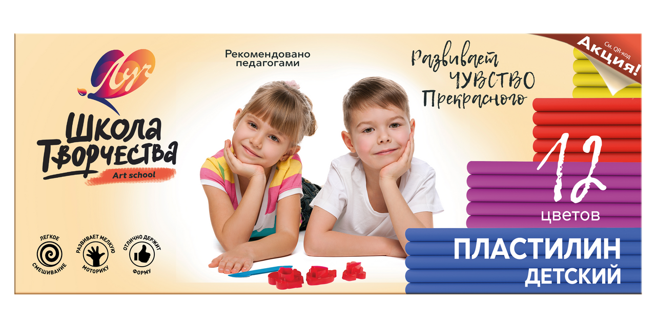 Пластилин Луч Школа творчества 12 цветов