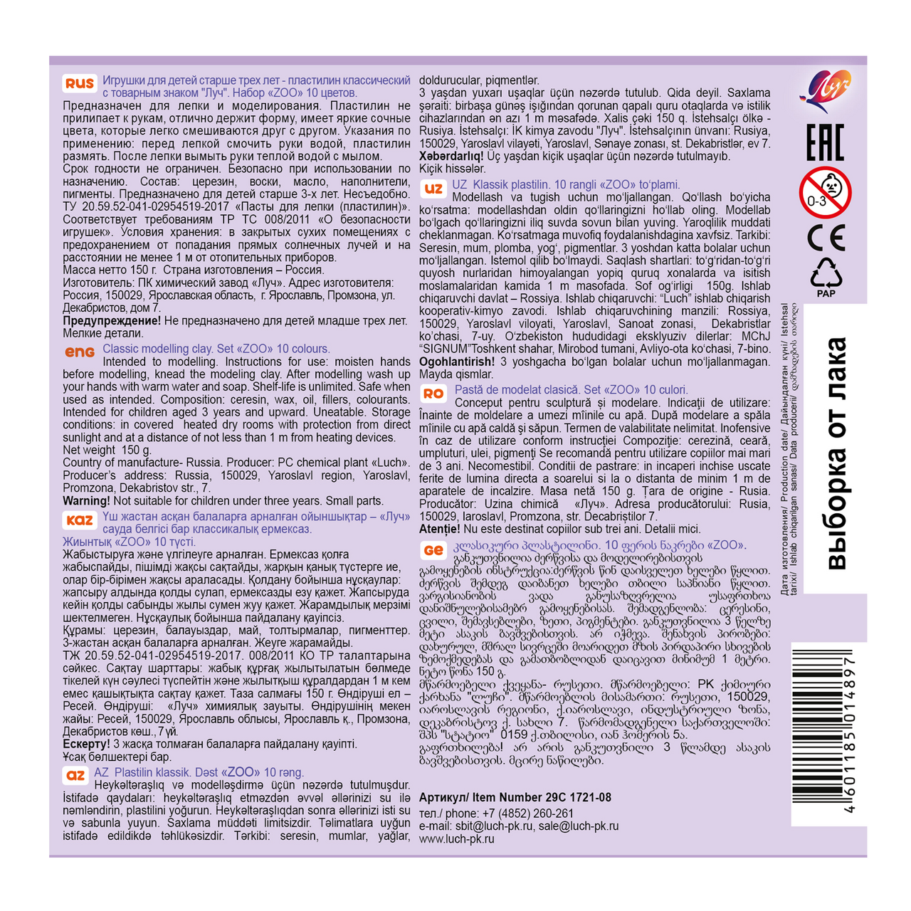 Пластилин Zoo предназначен для лепки и моделирования в детском творчестве. Пластилин рекомендуют не только педагоги и родители, но и профессиональные мультипликаторы. В меру мягкий и в меру твёрдый, не рвётся и не крошится при перегибании, поделки из него отлично держат форму, не выцветают. Без выраженного запаха, не липнет к рукам.