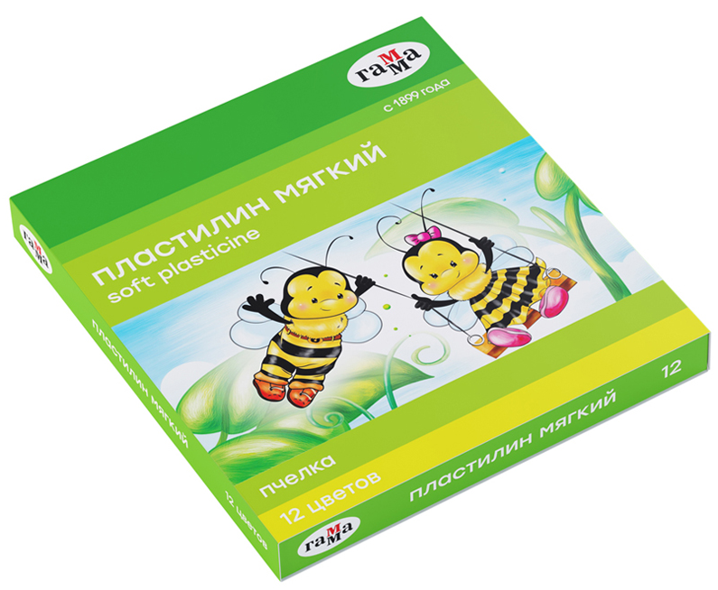 Пластилин восковой Гамма мягкий пчелка 12 цветов, 238г