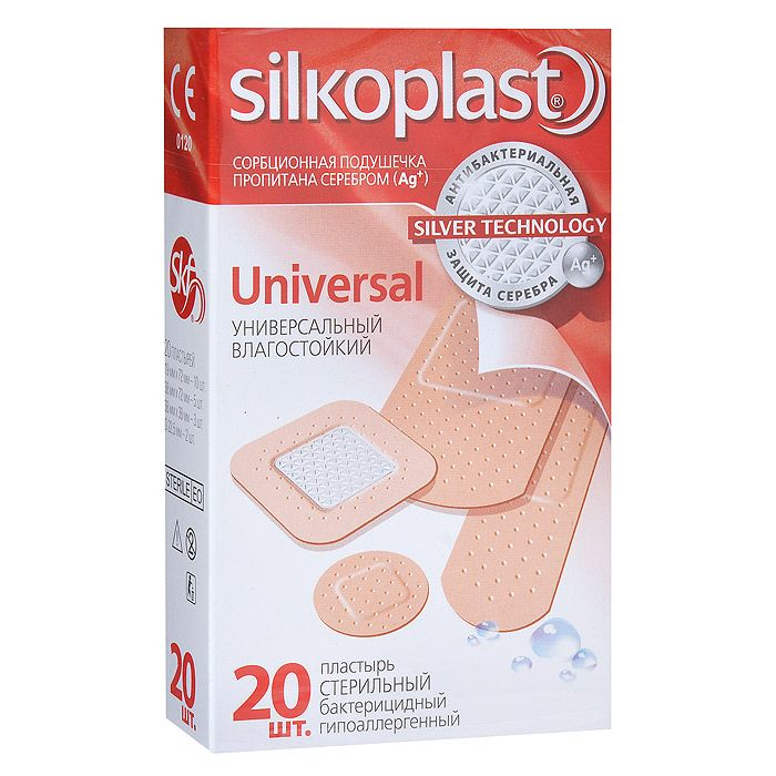 Пластырь Silkoplast Universal незаменим в случае мозолей, царапин, порезов и других повреждений кожи. Каждая из 20 стерильных повязок разной формы и размера имеет индивидуальную упаковку для максимальной гигиеничности. Гипоаллергенная клеевая основа надежно крепит пастырь к коже, не вызывая раздражений. Подушечка, пропитанная серебром, обеспечивает дополнительную защиту от микробов и бактерий.Срок годности: 1800 дней.