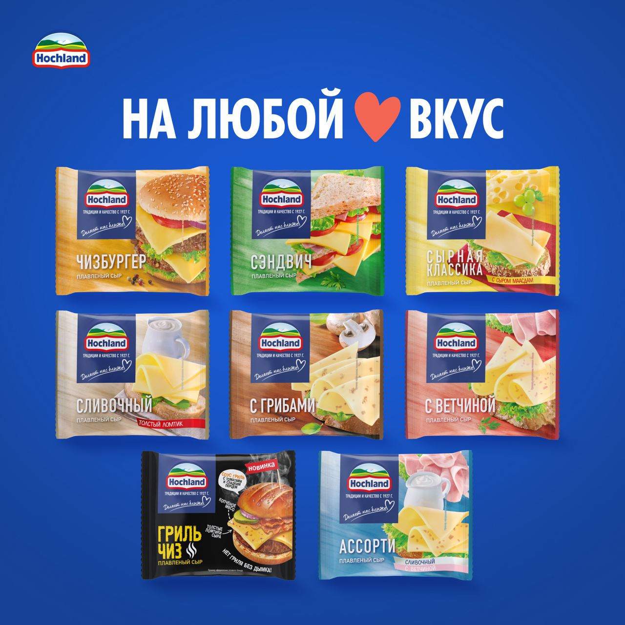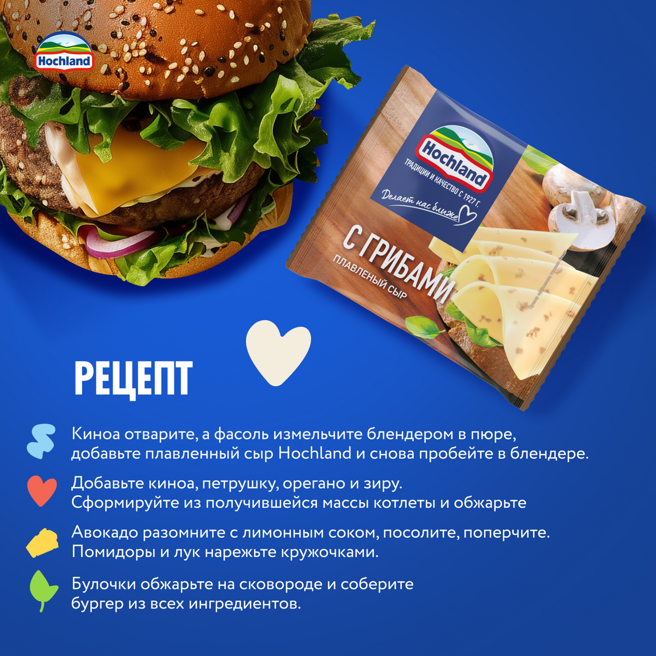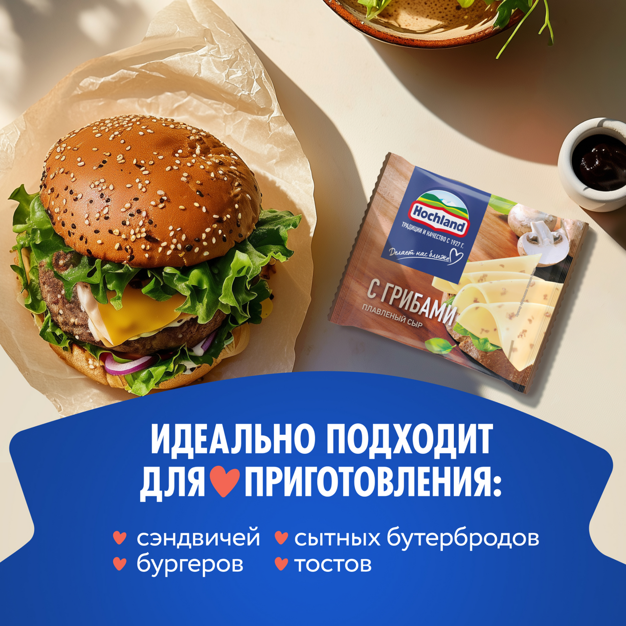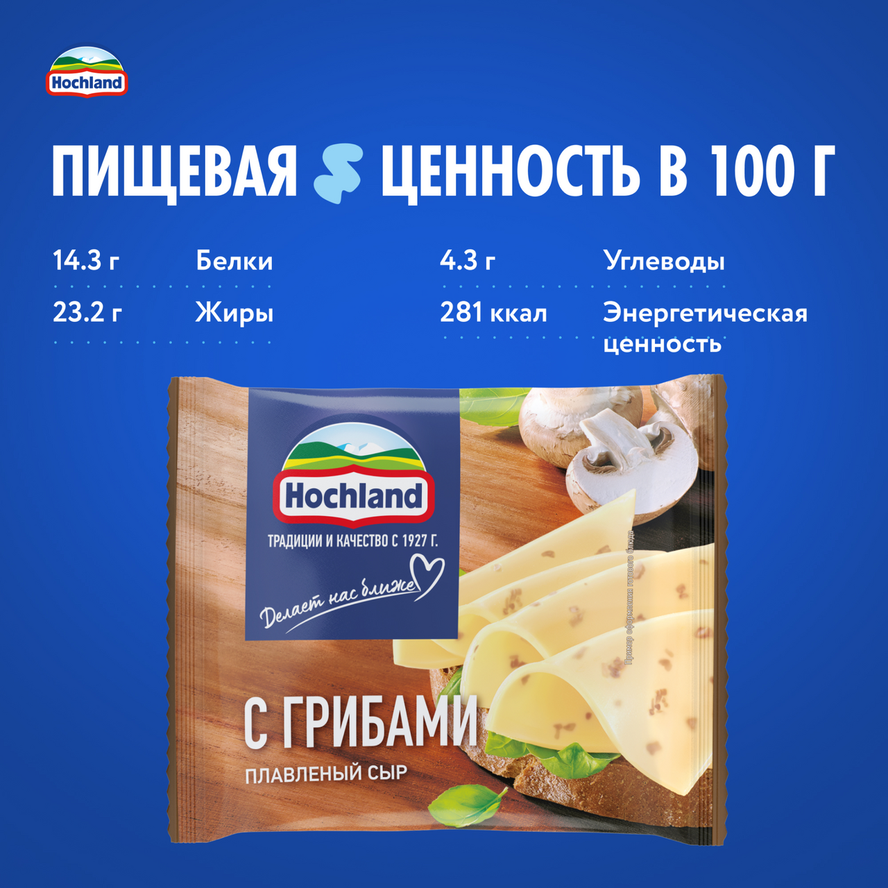 Сыр плавленый Hochland с грибами в ломтиках 45%, 150г