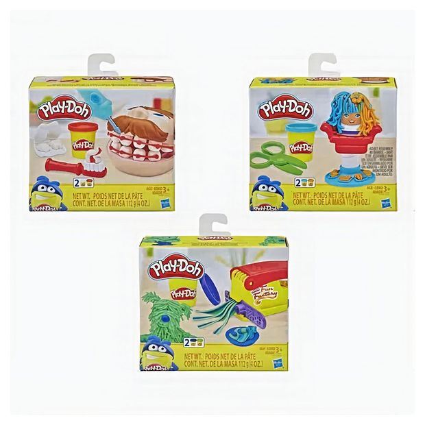 С этими наборами также весело играть, что и с большими версиями, при этом их формат более компактен и цена ниже. Играйте в зубного врача с набором мини-Доктор Зубастик, создавайте различные формы с мини-Фабрикой веселья, примерьте на себя роль парикмахера с набором мини-Сумасшедшие прически. В комплекте аксессуары и 2 стандартных банки с массой для лепки