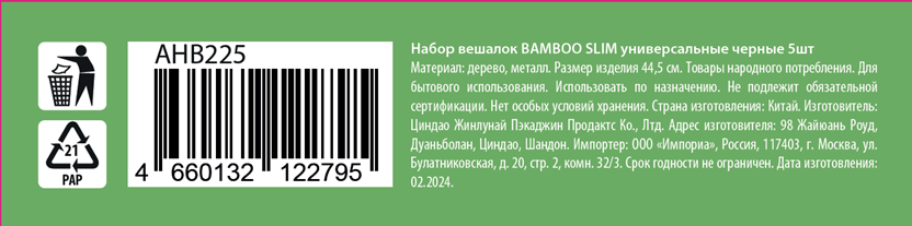 Набор вешалок универсальные Bamboo Slim 5шт 44см - идеальное решение для вашего шкафа и гардеробной. Этот комплект деревянных плечиков выполнен из экологичного материала, что подчеркнет вашу заботу об окружающей среде. Экологичные деревянные вешалки не выделяют вредных веществ и не вызывают аллергии, что делает их безопасными для здоровья человека.