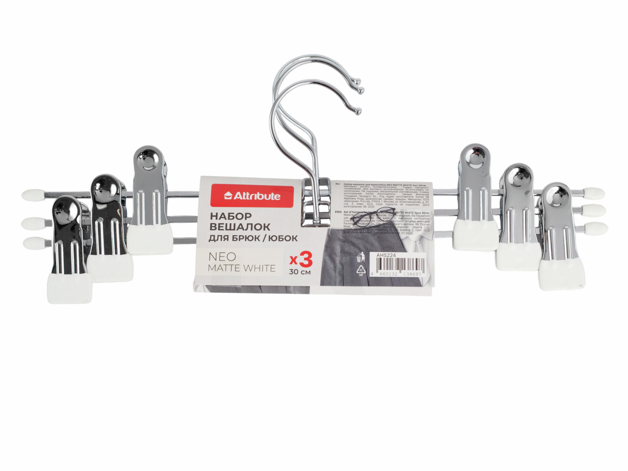 Плечики для брюк Attribute Metal Black and White Neo, 3шт