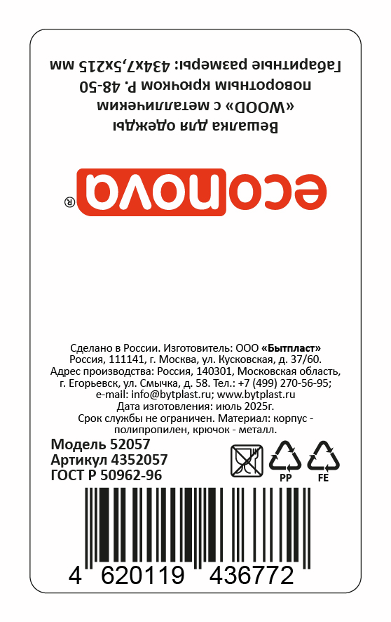 Прочные вешалки для одежды Wood с текстурой под дерево, сочетающие в себе эстетику и функциональность, станут прекрасным дополнением для прихожей или гардеробной. Вешалки оптимального размера 48-50 подойдут для хранения верхней одежды, пиджаков, рубашек, платьев, а благодаря нижней перекладине на вешалке также можно разместить брюки или юбку. Перекладина имеет ребра для предотвращения скольжения одежды и ее падения с вешалки. Специальные выемки позволяют вешать одежду на бретельках и юбки. Крючок поворачивается на 360С для удобного хранения одежды. Вешалки не оставляют зацепок и заноз на одежде. Вешалки изготавливаются из 100% перерабатываемого прочного безопасного полипропилена, не содержат бисфенол А. Крючки изготовлены из нержавеющей стали и не подвержены коррозии.