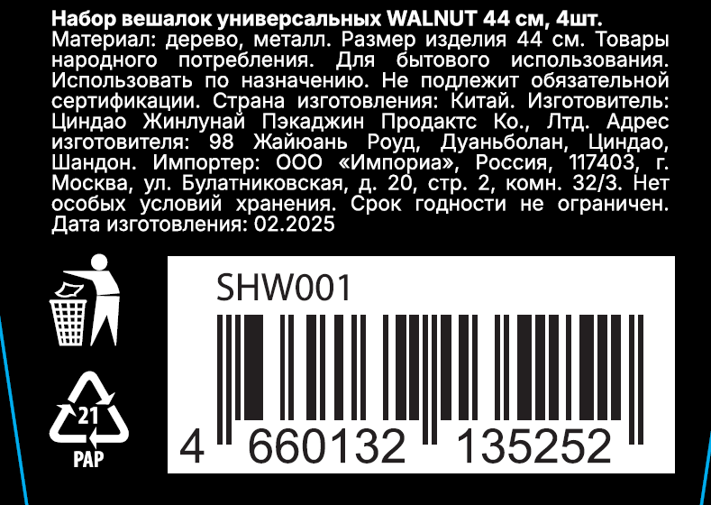 Набор вешалок Walnut выполнен из натурального, дерева, защищенного бесцветным лаком от проникновения влаги. Поворачивающаяся ручка из качественной стали, позволяет удобно размещать вещи в шкафу. Благодаря оптимальному размеру и выемках на вешалке ваши рубашки, свитера и блузки всегда будут в идеальном состоянии.
