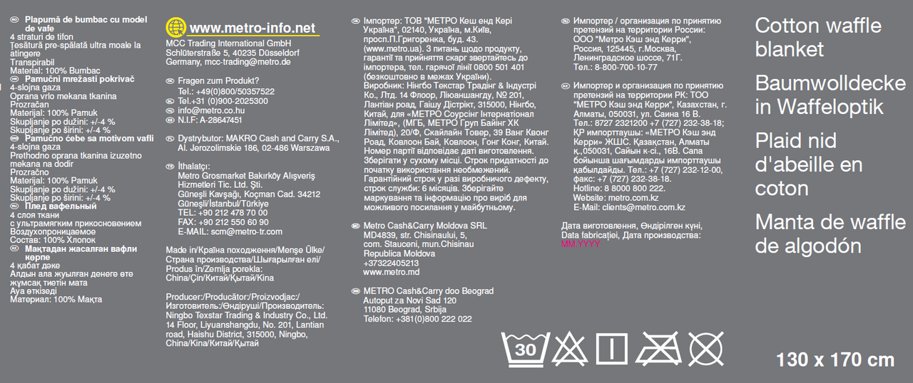 Tarrington House Плед серый хлопок 100%, 130 x 170см идеально подходит для использования дома, на пикниках или в путешествиях, обеспечивая уют и тепло. Хлопок хорошо пропускает воздух, что делает плед идеальным для использования в любое время года. Плед износостойкий, не теряет свойств после множества стирок, при следовании рекомендациям для стирки.