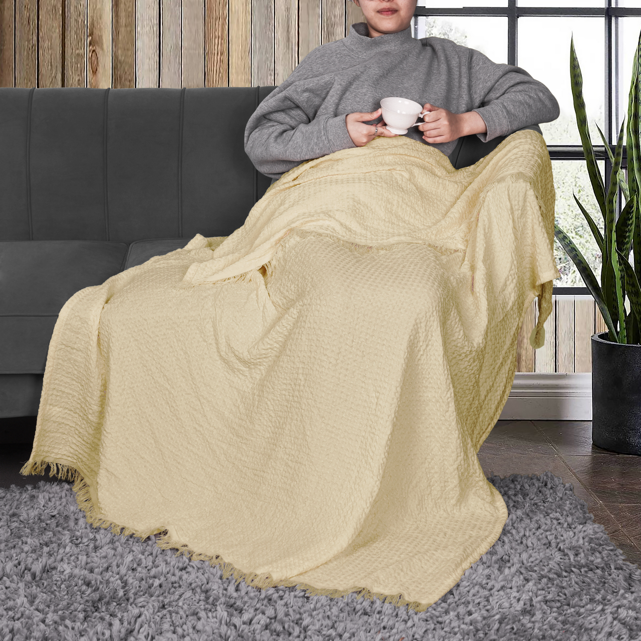 Tarrington House Плед вафельный бежевый из полиэстера, 130 x 170см
