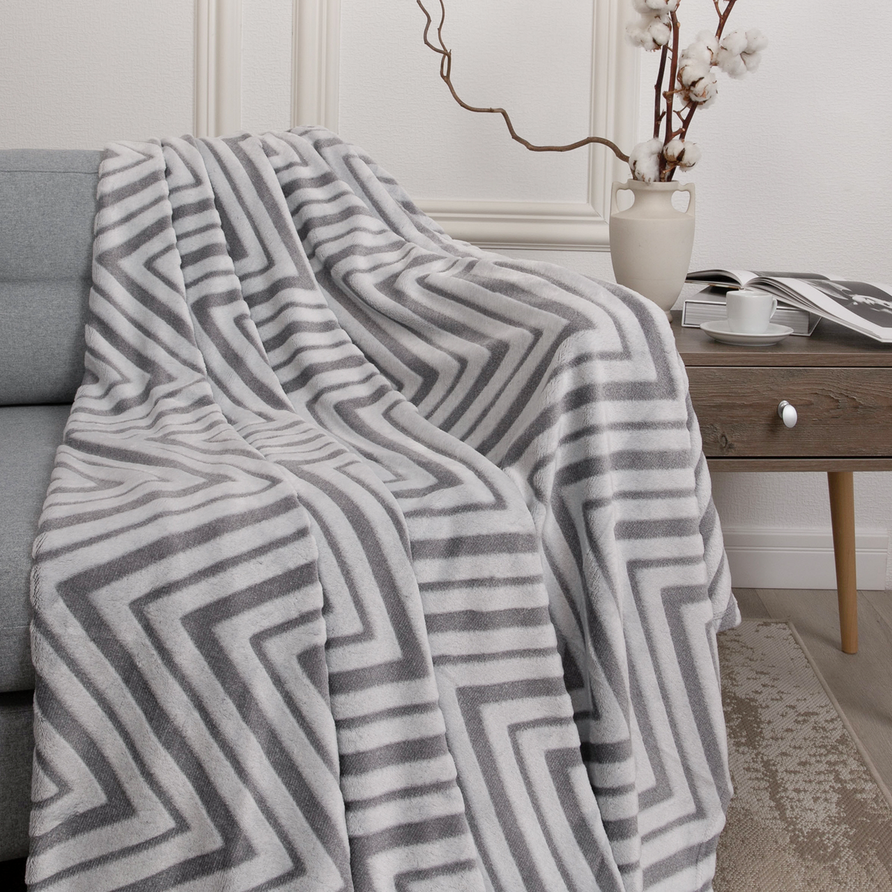 Плед Tessolo Home микровелюр серый зигзаг 250г, 150 x 200см