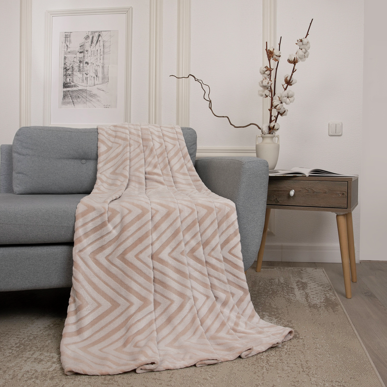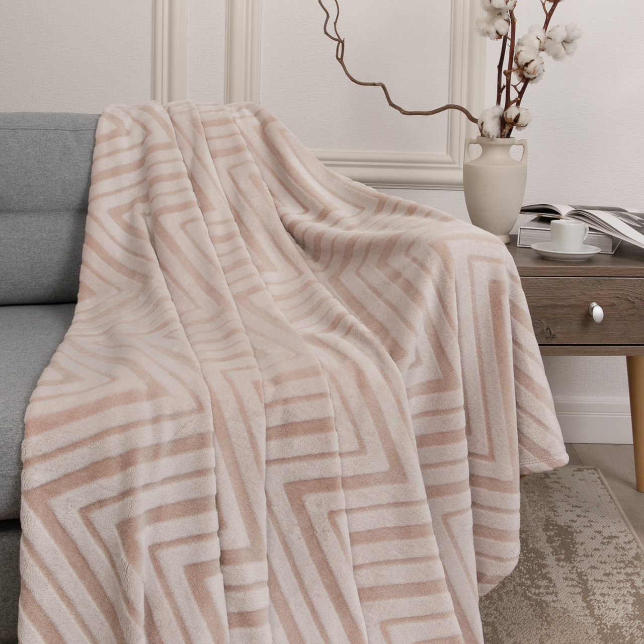 Плед Tessolo Home микровелюр бежевый зигзаг 250г, 150 x 200см