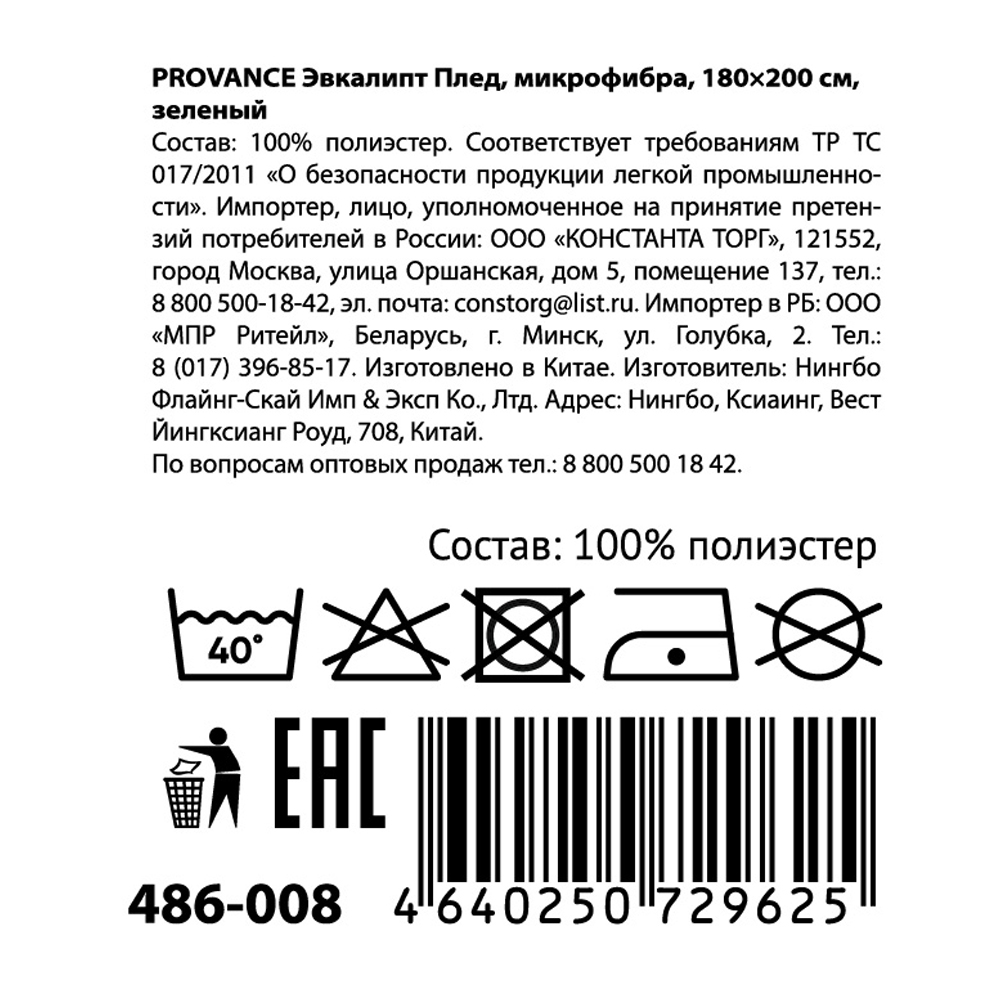 Плед Provance Эвкалипт из микрофибры зеленый, 180 x 200см