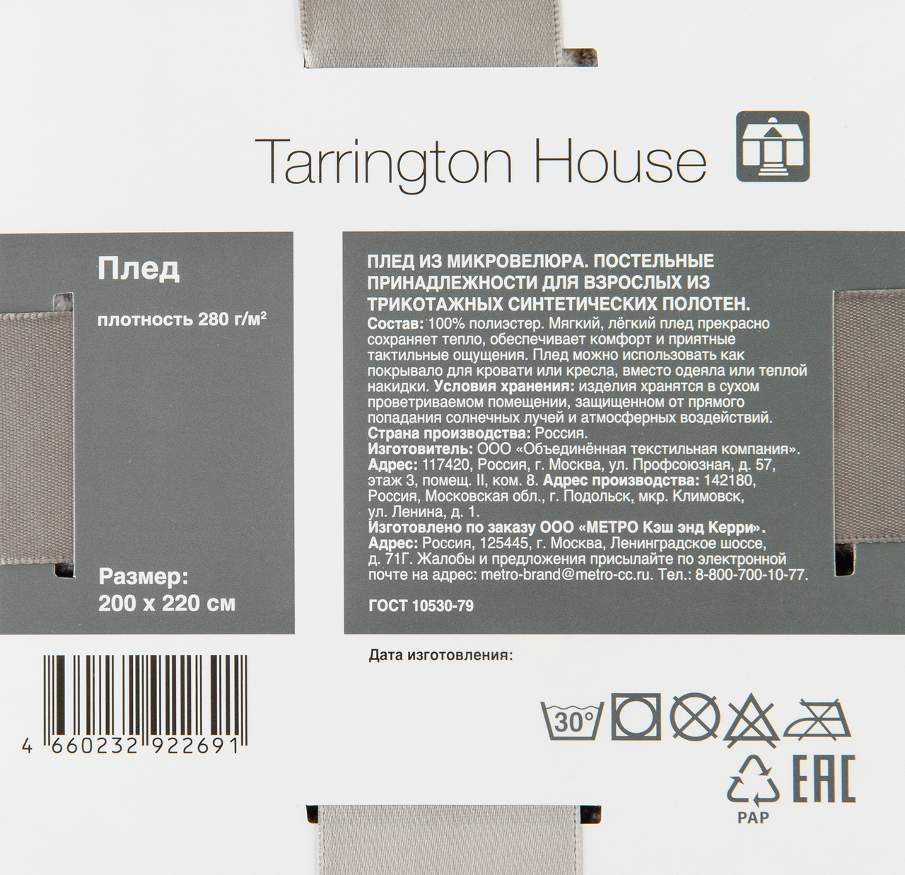 Tarrington House Плед шоколадный микрофибра велюр 280 г, 200 x 220 см выполнен из мягкого и приятного на ощупь материала. Он обеспечивает тепло и уют в холодную погоду, позволяет согреться в период, когда еще не начался отопительный сезон. Оптимальный размер модели позволяет полностью покрывать кровать, кресло или диван. Нейтральный дизайн в шоколадном цвете придает пледу элегантный внешний вид. Он сочетается с разными стилями интерьера: от классики до современного лофта, хай-тека, конструктивизма. Плед обладает высокой прочностью и длительным сроком эксплуатации. Его легко стирать вручную или в машинке с использованием ополаскивающих средств. При этом текстиль сохраняет первоначальную мягкость и цвет на долгое время. Модель предназначена для повседневного использования, так как обладает хорошими теплоизоляционными свойствами. Она надолго сохраняет тепло и позволяет чувствовать себя комфортно. Плед можно использовать как в спальне, так и в гостиной или на открытом воздухе: во время пикника, барбекю, прогулки. Плотный материал достаточно легкий и воздухопроницаемый, поэтому позволяет коже дышать и не перегреваться.