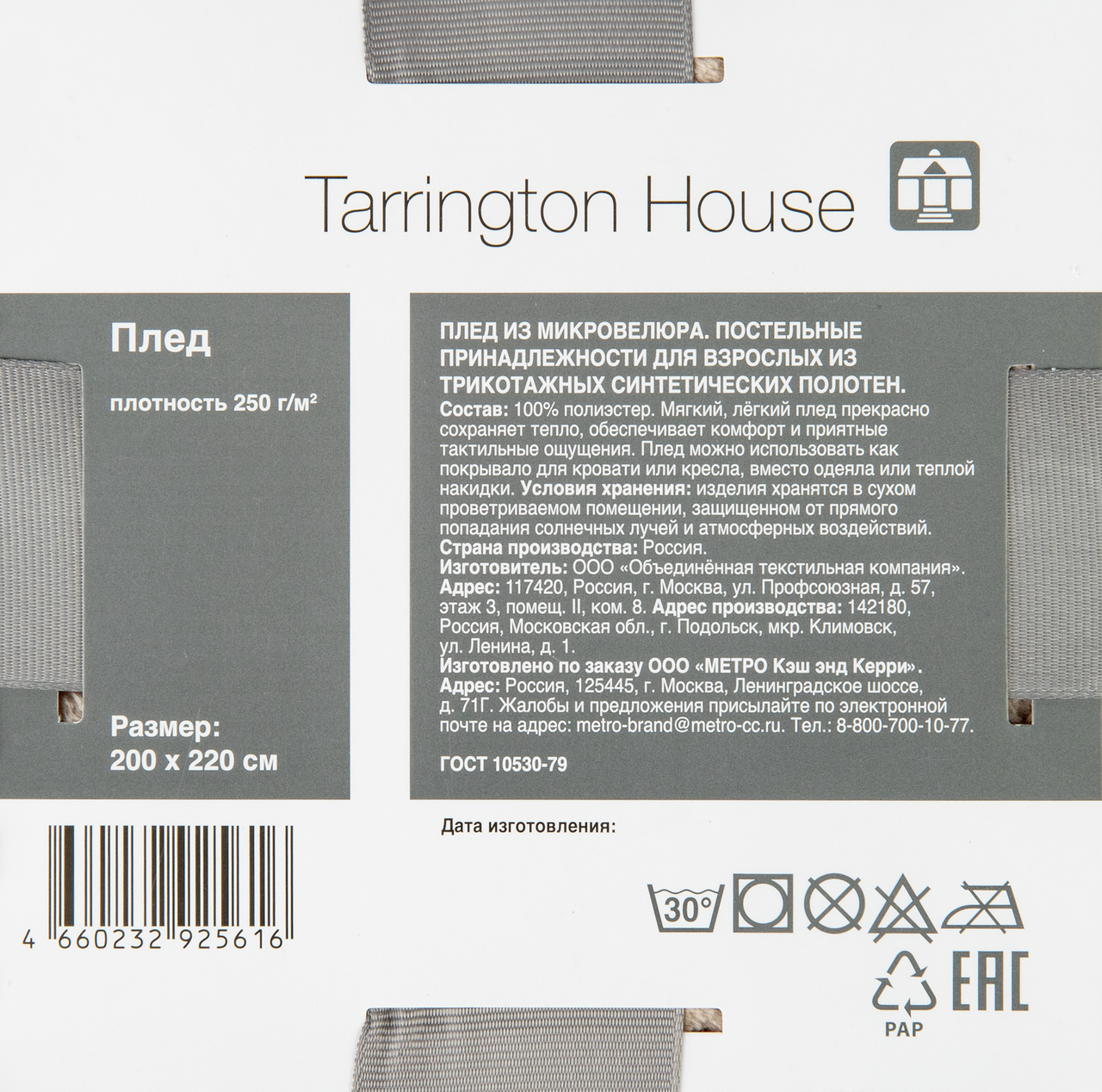 Tarrington House Плед микровелюр Волна бежевый 250 г, 200 x 220 см — плед-покрывало из микровелюра с объемным 3D рисунком Волна. Модный оптический эффект достигается путем современной технологии выстрига ворса. Благодаря такому методу создается бархатистая текстура, к которой хочется прикоснуться рукой. Мягкий, легкий плед прекрасно сохраняет тепло, обеспечивает комфорт и приятные тактильные ощущения. Плед можно использовать как покрывало для кровати, покрывало для кресла, вместо одеяла или теплой накидки. Текстиль можно стирать в машинке, плед быстро сохнет, не требует глажения. Он устойчив к деформации, современные безопасные методы окрашивания позволяют надолго сохранять сочность цветов после многочисленных стирок. Плед-покрывало – это отличный подарок и прекрасное украшение интерьера квартиры, загородного дома, дачи.