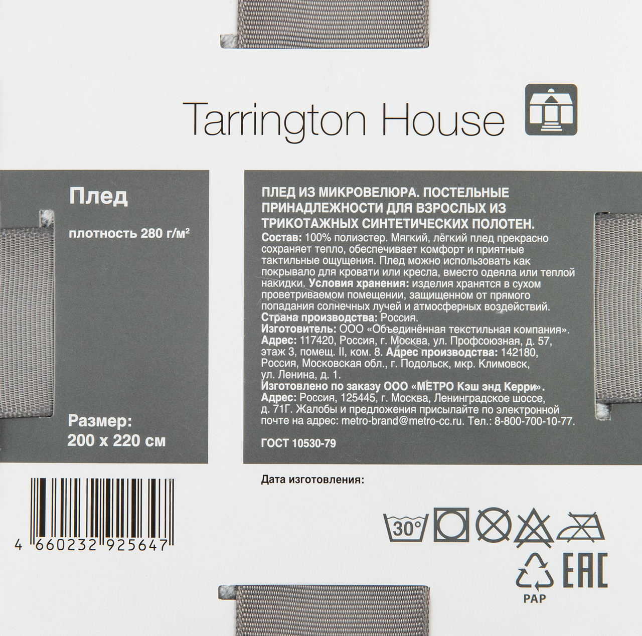 Tarrington House Плед микровелюр Зебра бежевый 280 г, 200 x 220 см — плед-покрывало из микровелюра с объемным 3D рисунком Зебра. Модный оптический эффект достигается путем современной технологии выстрига ворса. Благодаря такому методу создается бархатистая текстура, к которой хочется прикоснуться рукой. Мягкий, легкий плед прекрасно сохраняет тепло, обеспечивает комфорт и приятные тактильные ощущения. Плед можно использовать как покрывало для кровати, покрывало для кресла, вместо одеяла или теплой накидки. Изделие можно стирать в машинке, плед быстро сохнет, не требует глажения. Оно устойчив к деформации, современные безопасные методы окрашивания позволяют надолго сохранять сочность цветов после многочисленных стирок. Плед-покрывало – это отличный подарок и прекрасное украшение интерьера квартиры, загородного дома, дачи.