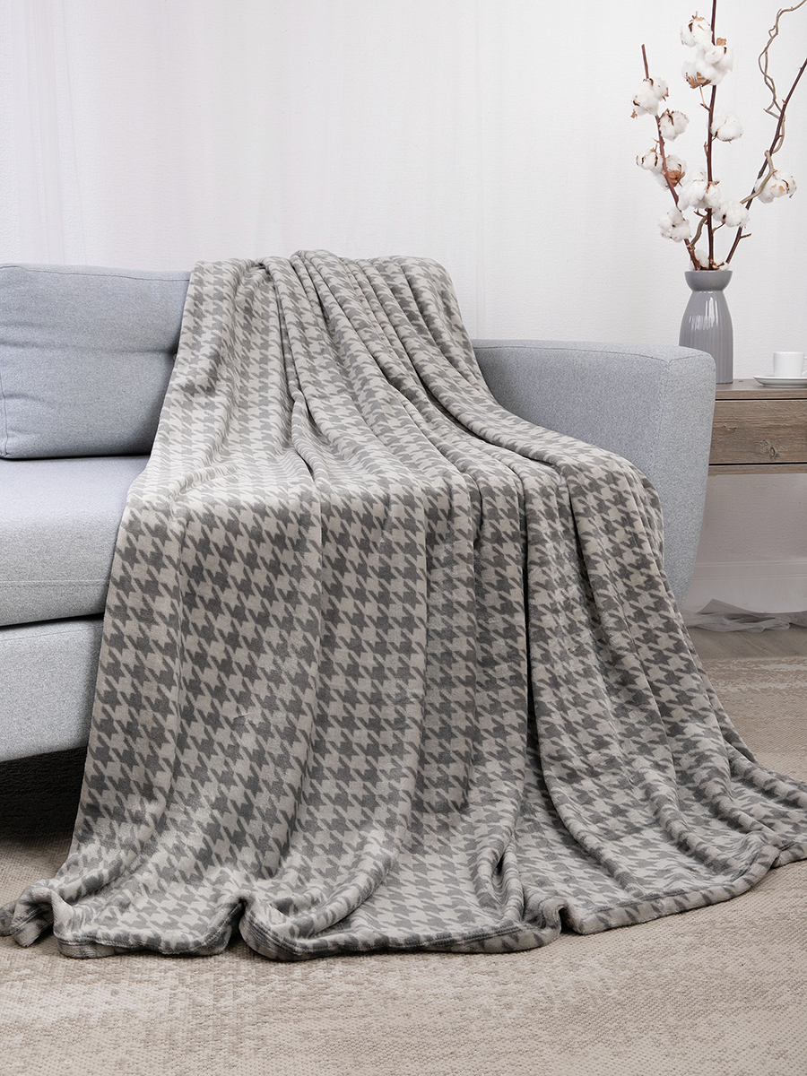 Плед Tessolo Home Пье-де-Пуль микровелюр серый, 150 x 200см