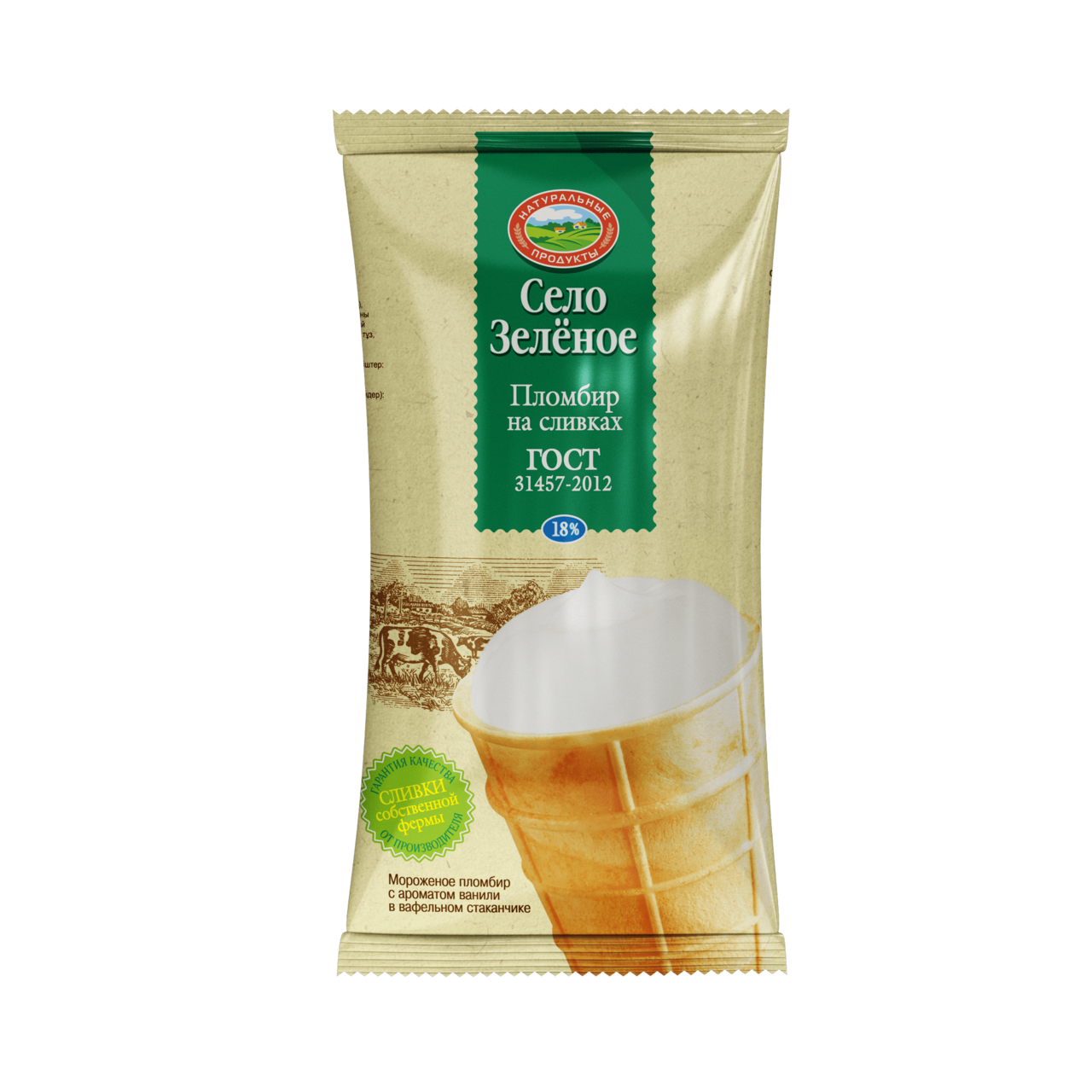 Мороженое Село Зеленое Пломбир ванильный вафельный стаканчик 18%, 90г