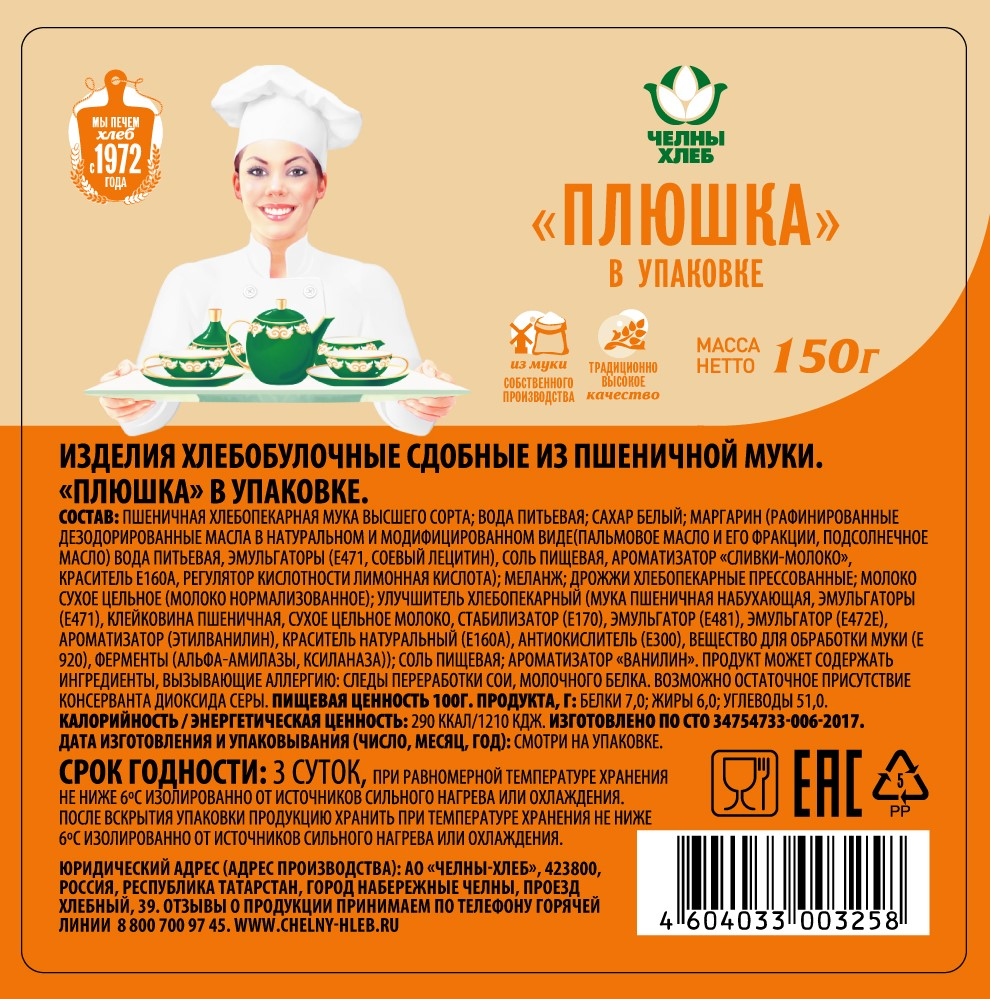 Плюшка Челны-хлеб 150г