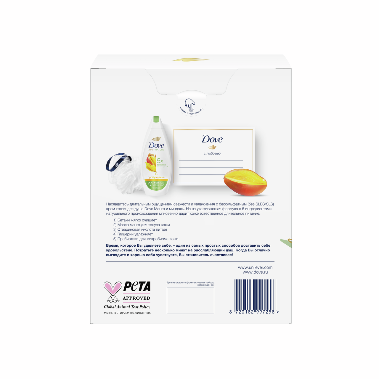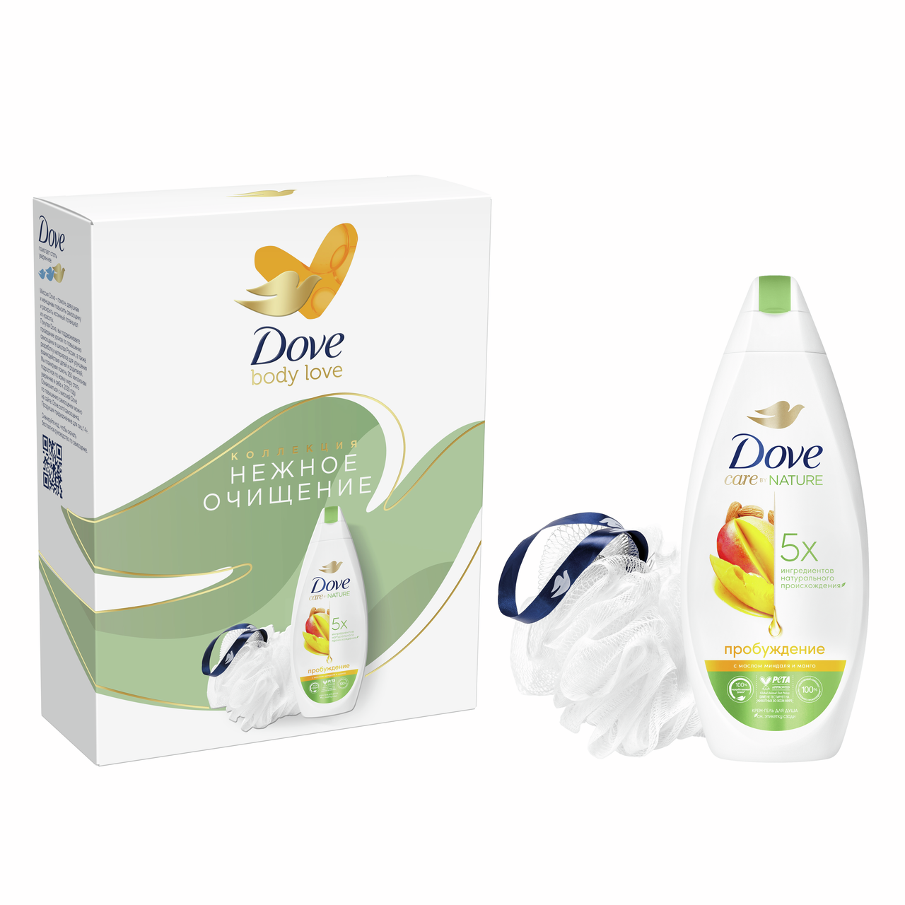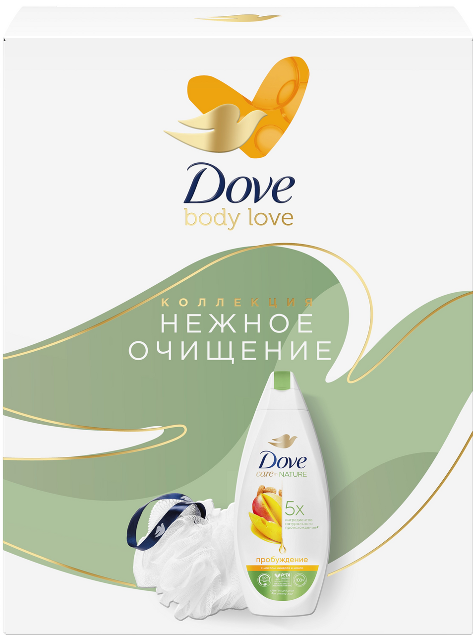 Подарочный набор Дав Нежное очищение гель для душа 250мл + мочалка