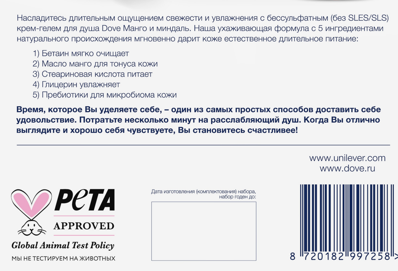 Насладитесь длительным ощущением свежести и увлажнения с бессульфатным гелем для душа Дав с алоэ вера и березовым соком. Он образует нежное облако воздушной пены, заботливо очищающее кожу. Нежная текстура с экстрактом алоэ вера и березовым соком обеспечит увлажняющий уход даже для сухой и обезвоженной кожи. Если вы хотите почувствовать свою кожу гладкой и нежной, гель для душа Дав – именно то, что вам необходимо. Эксперты Дав создали крем-гель для душа c алоэ вера и березовым соком, чтобы подарить вашей коже необходимую заботу и питание, а вам – момент наслаждения каждый день.