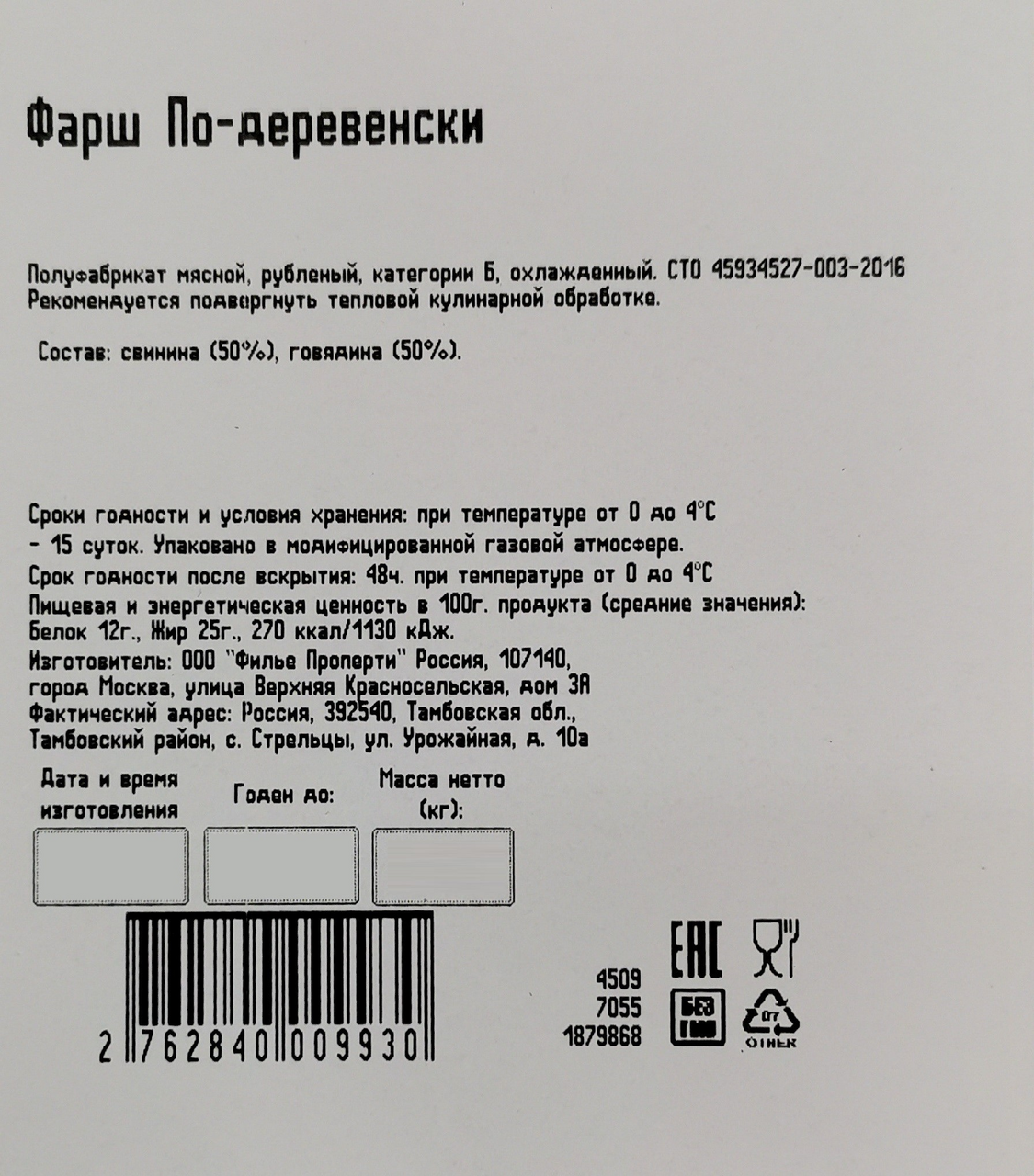 - Тип Фарш из говядины, свинины