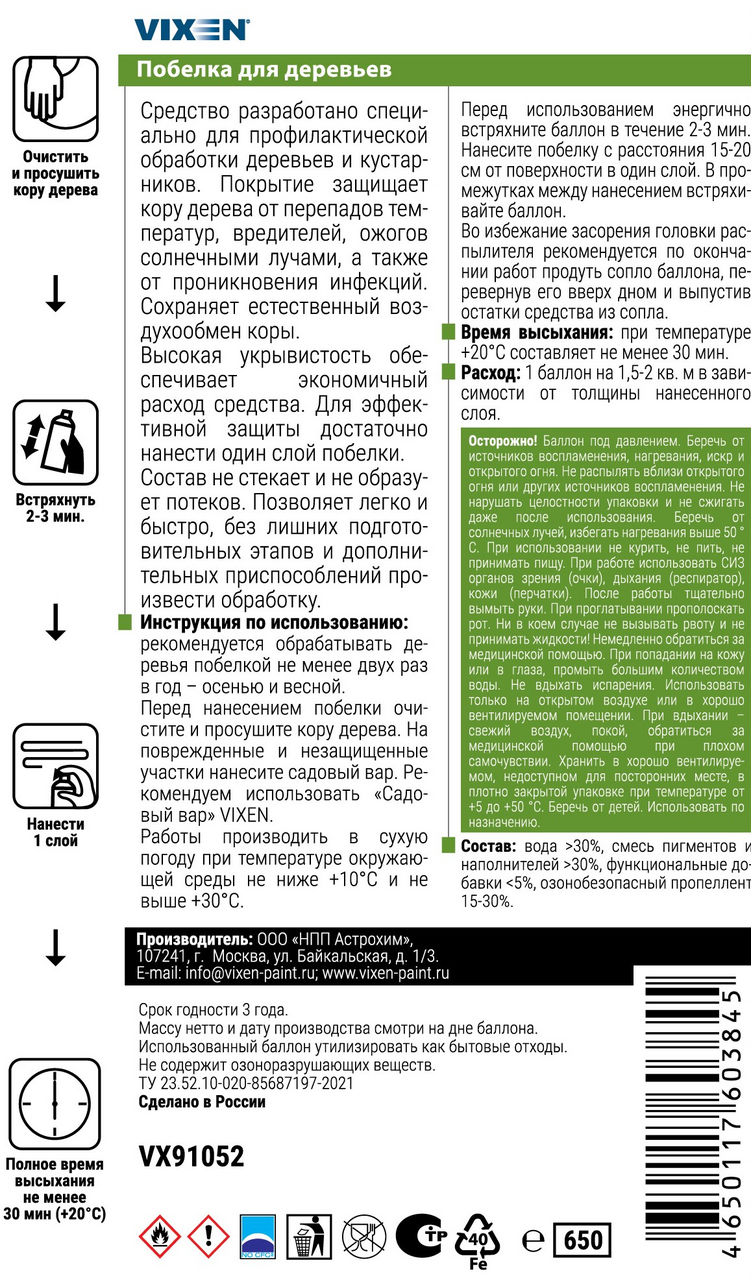 Побелка для деревьев Vixen аэрозоль, 650мл