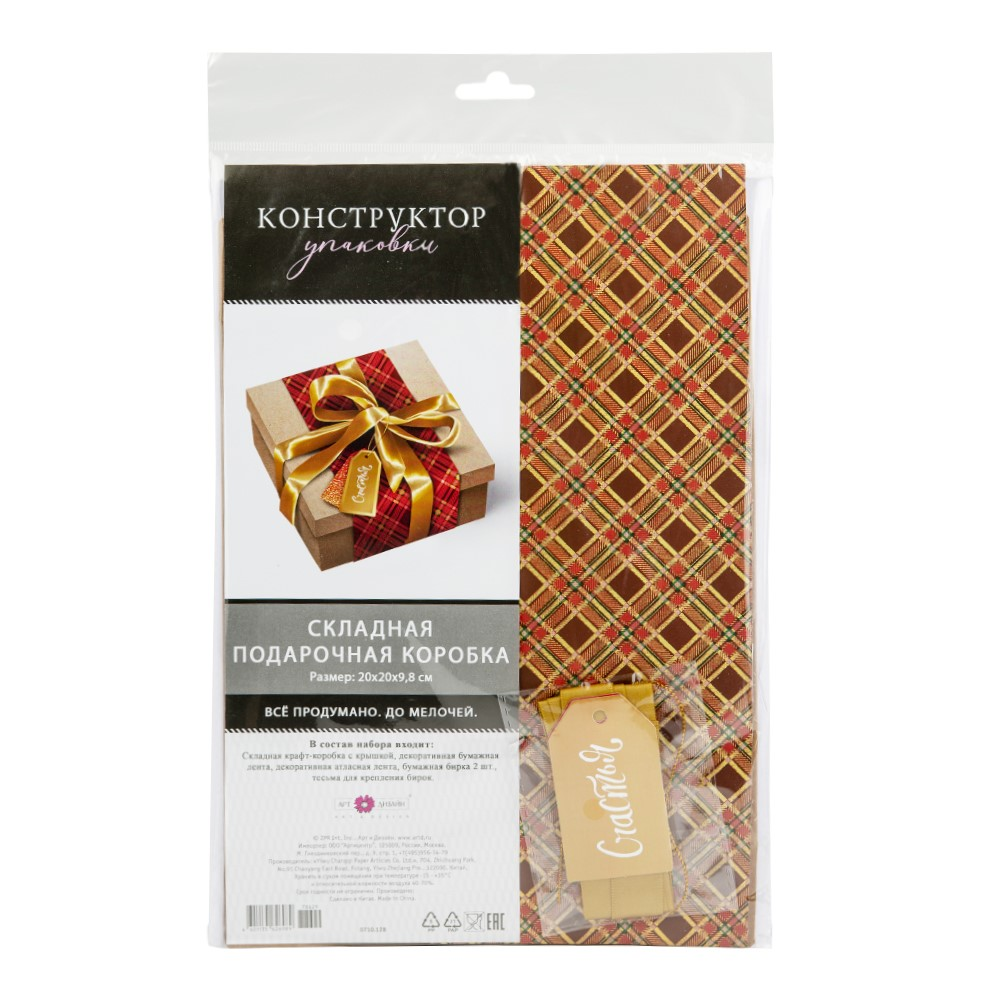 Коробка подарочная Арт и Дизайн складная, 20 x 20 x 10см имеет складную конструкцию. С ее помощью можно быстро и красиво упаковать подарок.