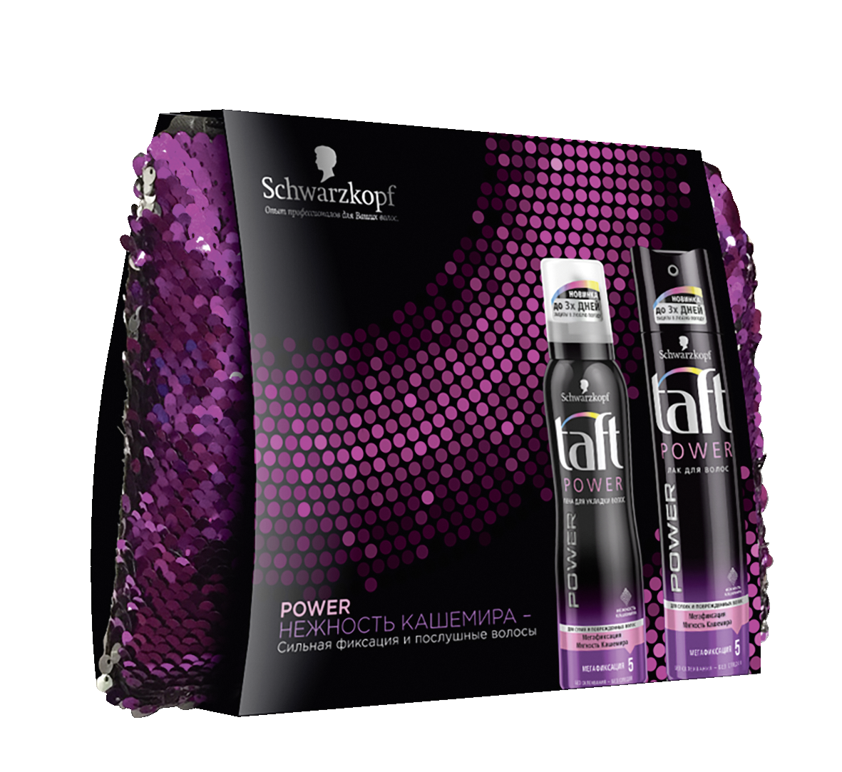 Подарочный набор Тафт Power Нежность Кашемира включает в себя лак Тафт для сухих и поврежденных волос и пену для укладки Тафт для сухих и поврежденных волос. Формула Тафт Power Нежность кашемира обеспечивает волосам ощущение мягкости и мегафиксацию на 24 часа без склеивания, не пересушивая и не утяжеляя пряди.