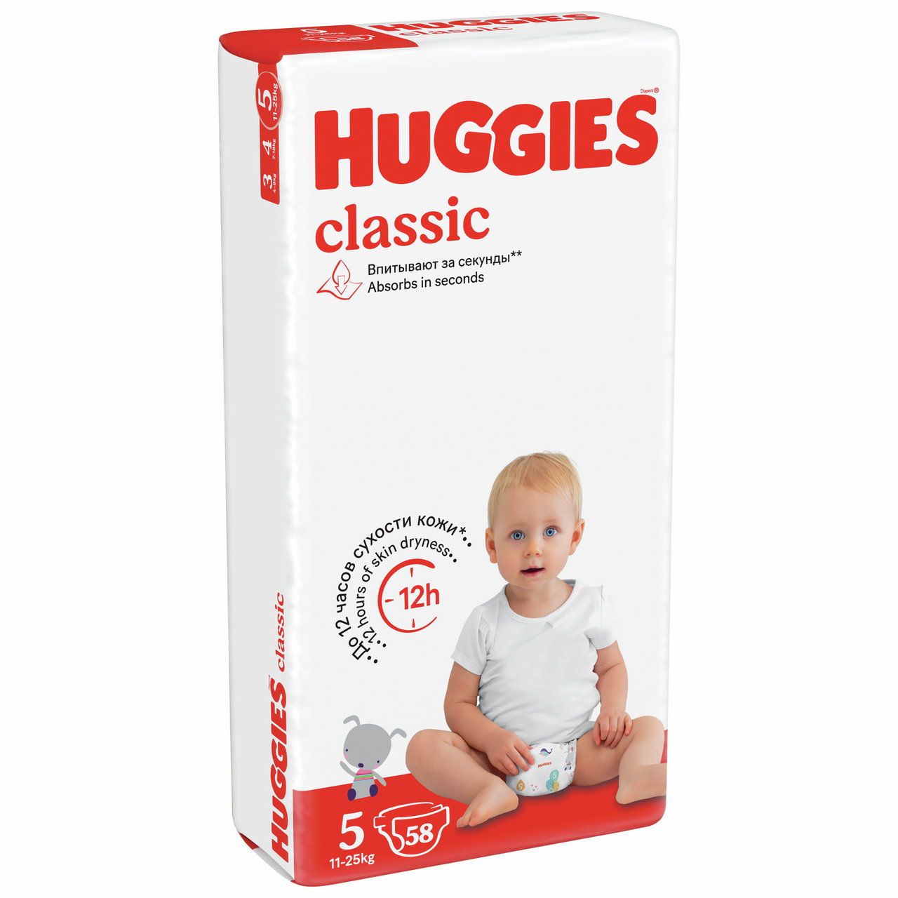 Подгузники Huggies Classic 5 размер 11-25кг, 58шт