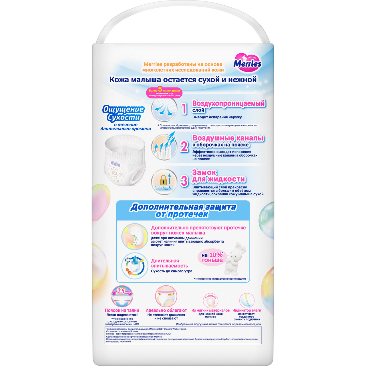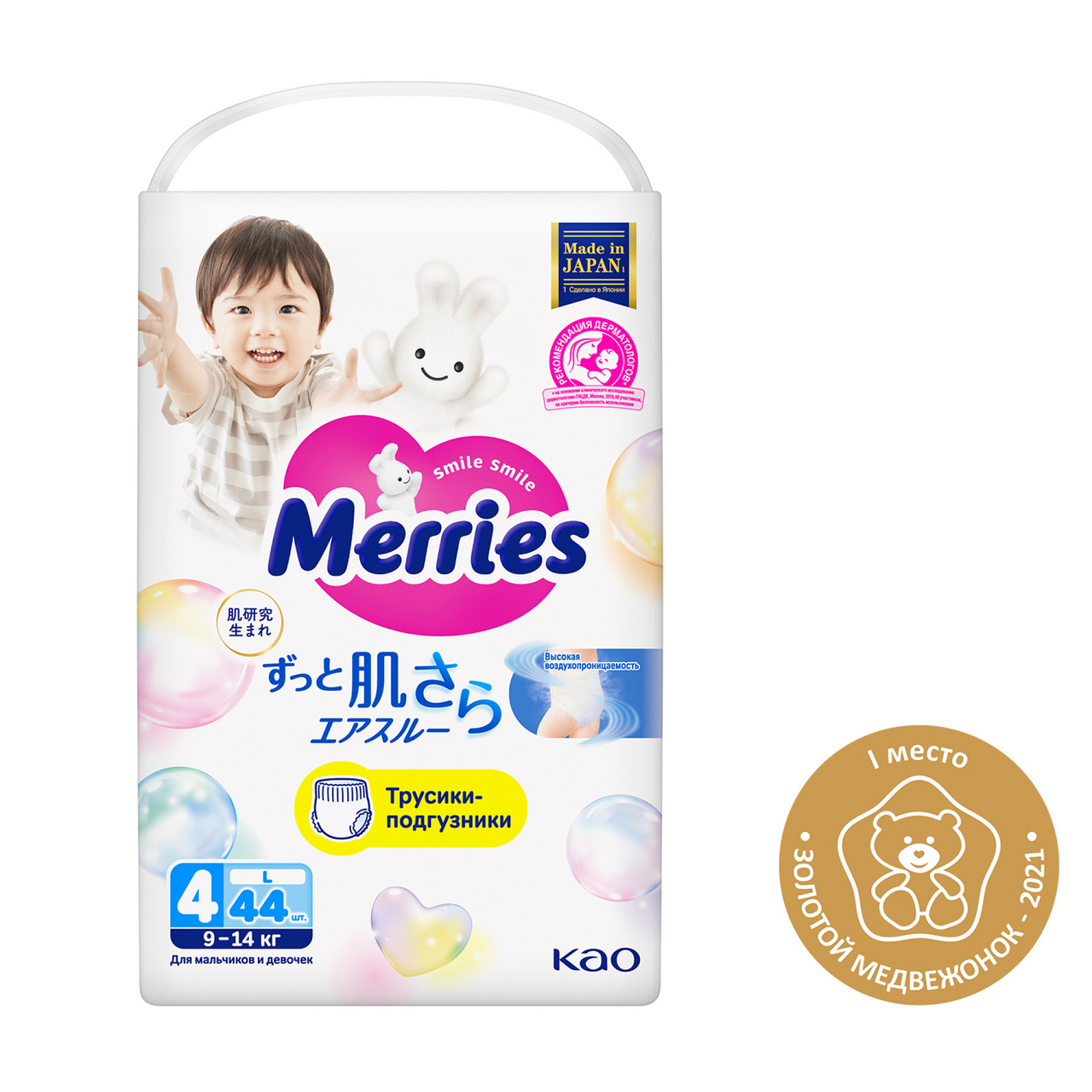 Подгузники-трусики Merries L 4 размер 9-14кг, 44шт